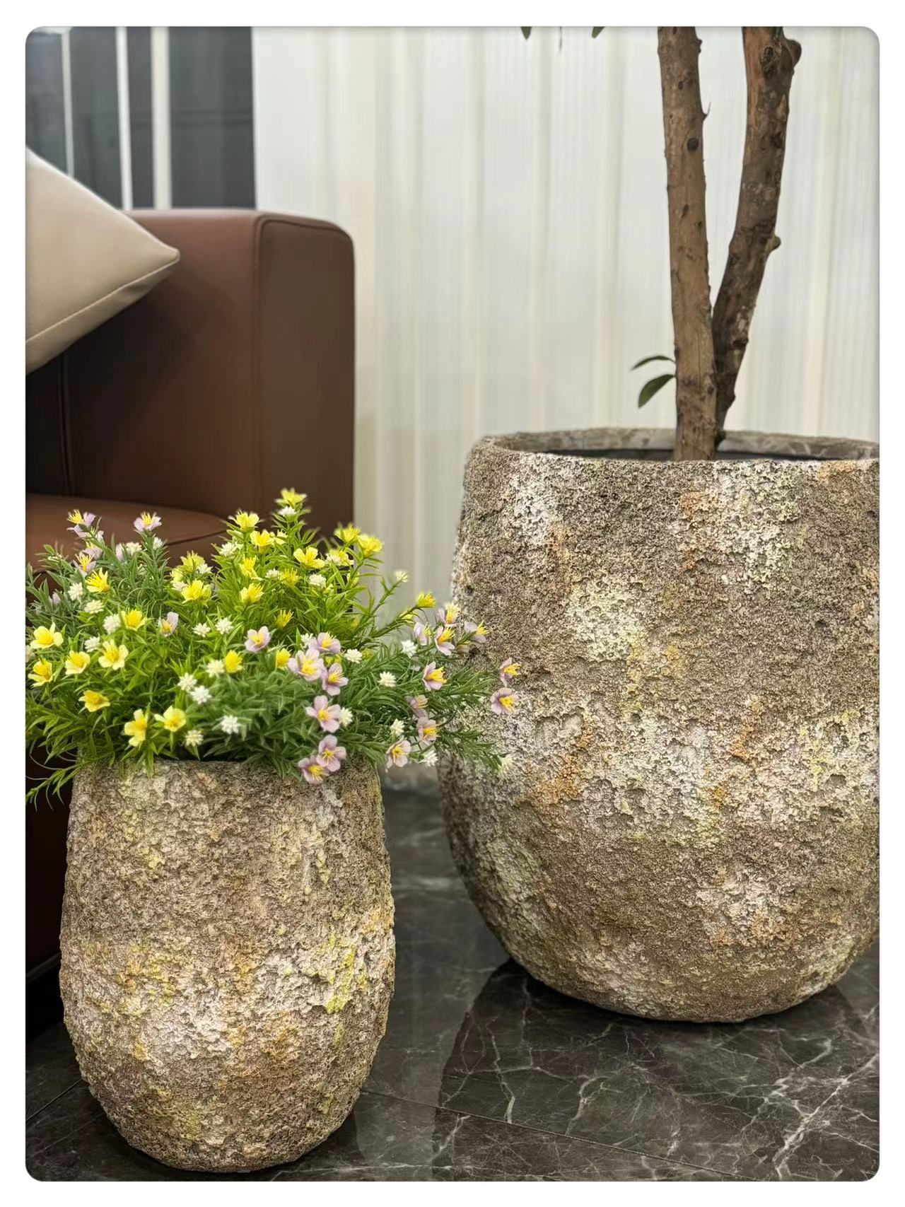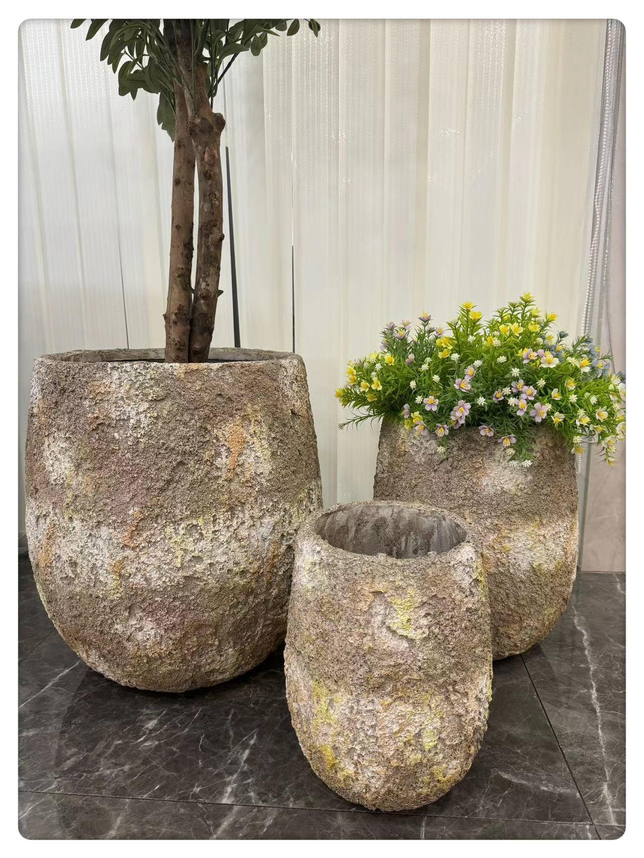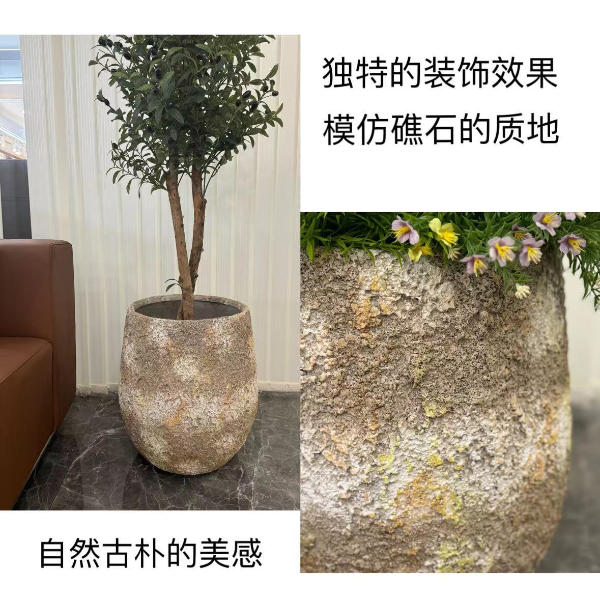 심플한 마그네슘 점토 화분 대형 녹색 식물 마그네슘 점토 화기구 거실 발코니 바닥 화분 실내 장식품 분재