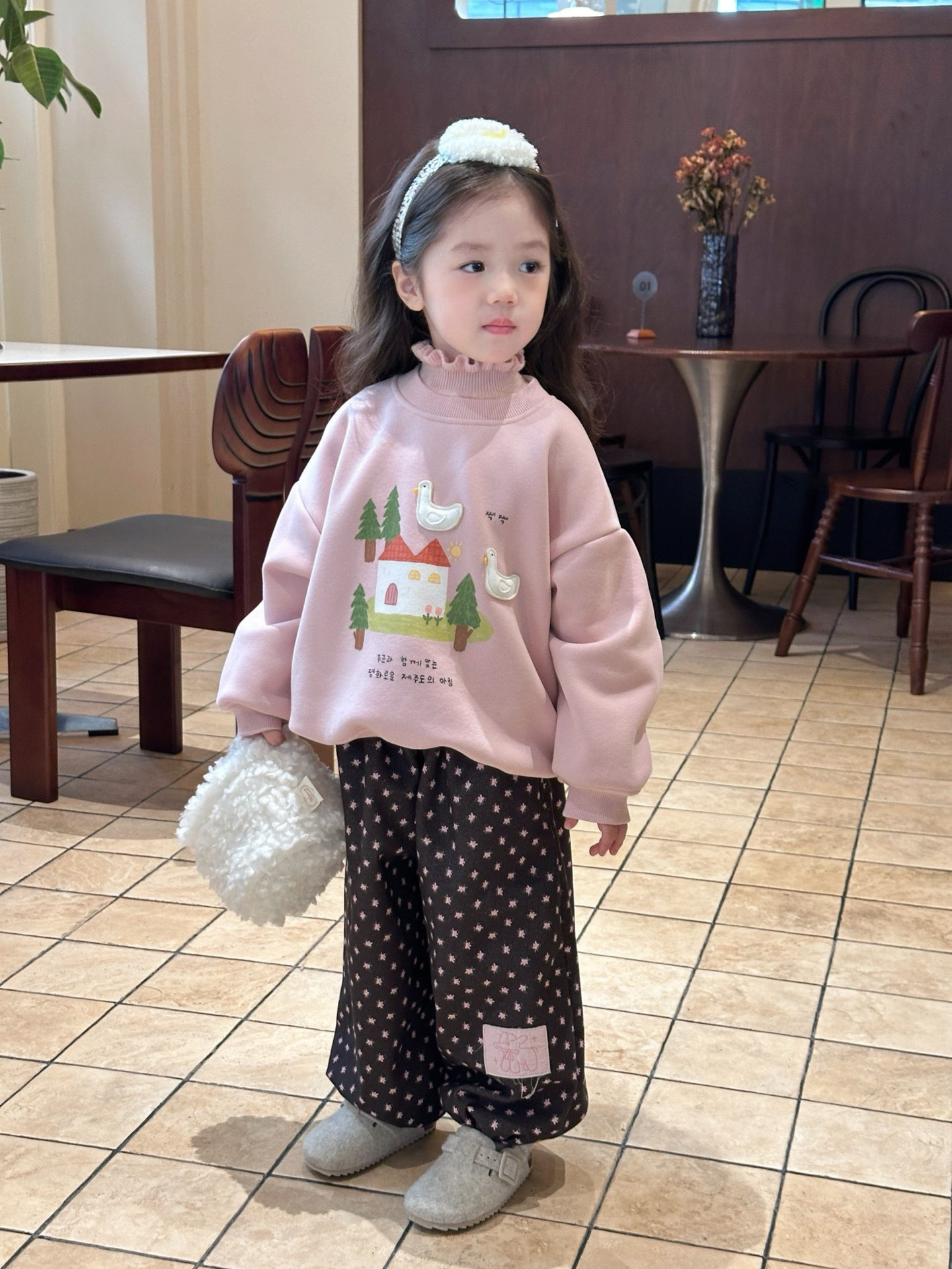 2024 가을과 겨울 새로운 소녀 어린이 의류 만화 기모 스웨터 스타 기모 캐주얼 바지스토어 가기