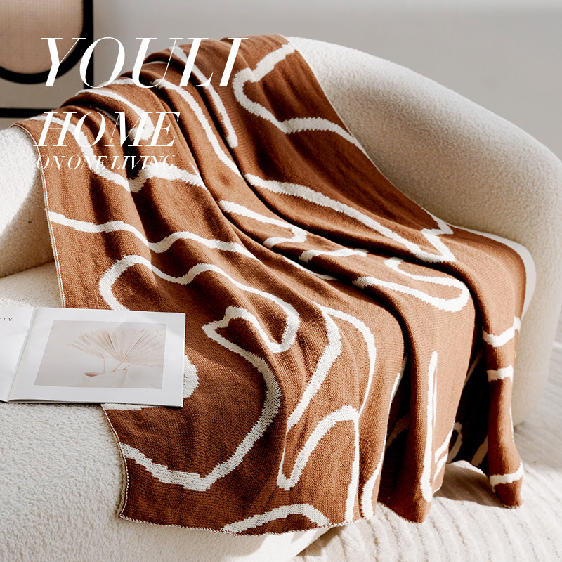 노르딕 빈티지 프랑스 다크 브라운 짠 담요 소파 담요 낮잠 담요 침대 꼬리 침대 침대 꼬리 담요 플래그 커버 담요