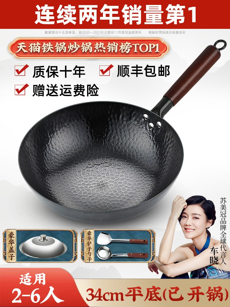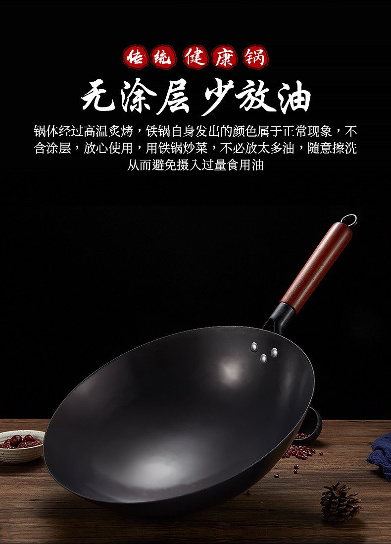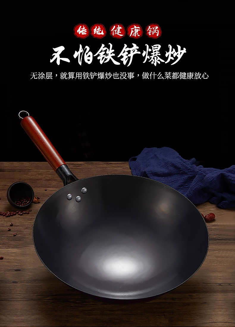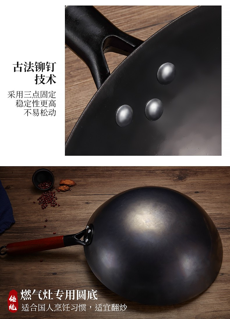 Wok 전통적인 철 냄비 플래그십 구식 Wok 가정용 비 스틱 팬 코팅 가스 스토브