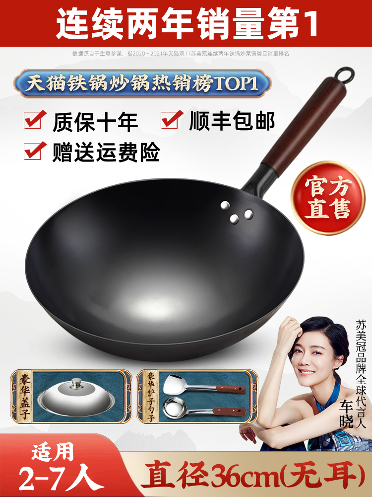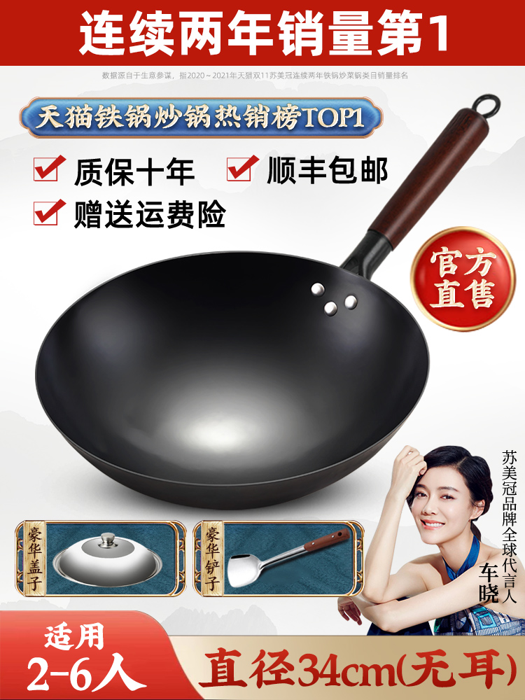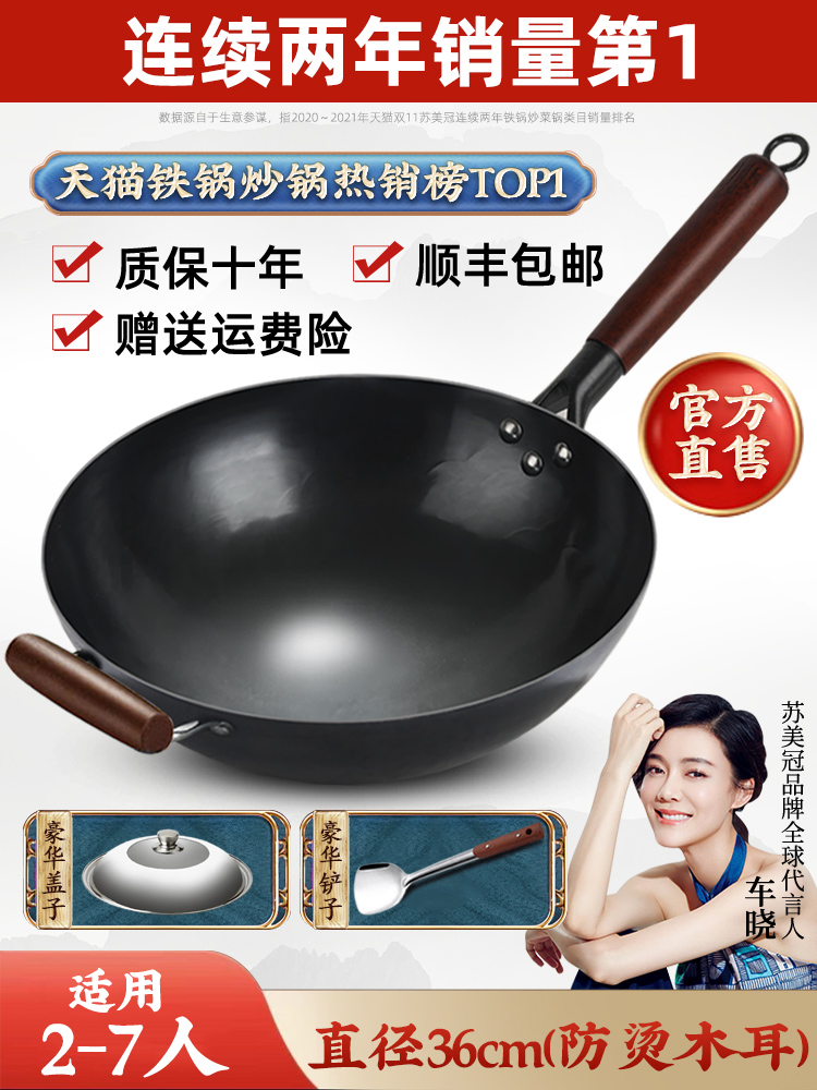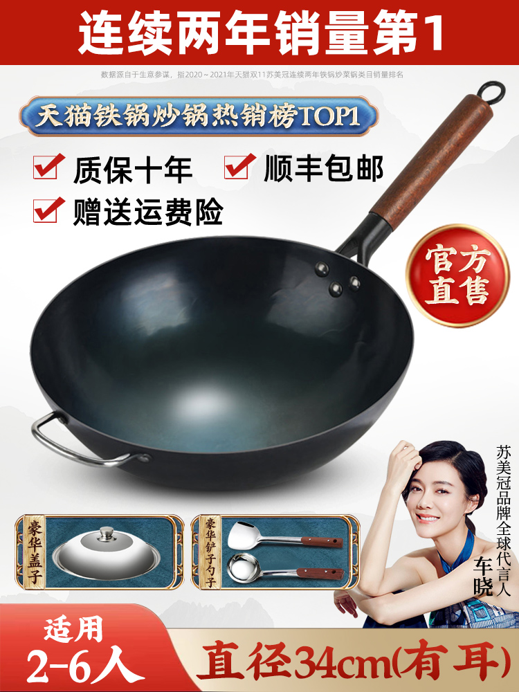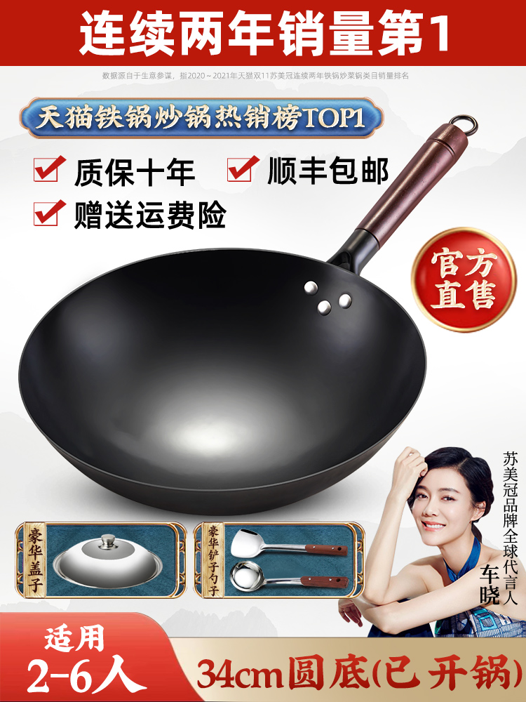 Wok 전통적인 철 냄비 플래그십 구식 Wok 가정용 비 스틱 팬 코팅 가스 스토브
