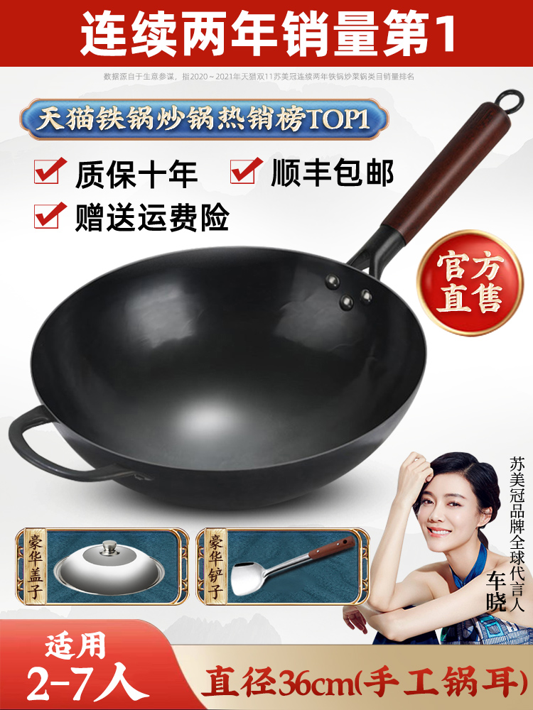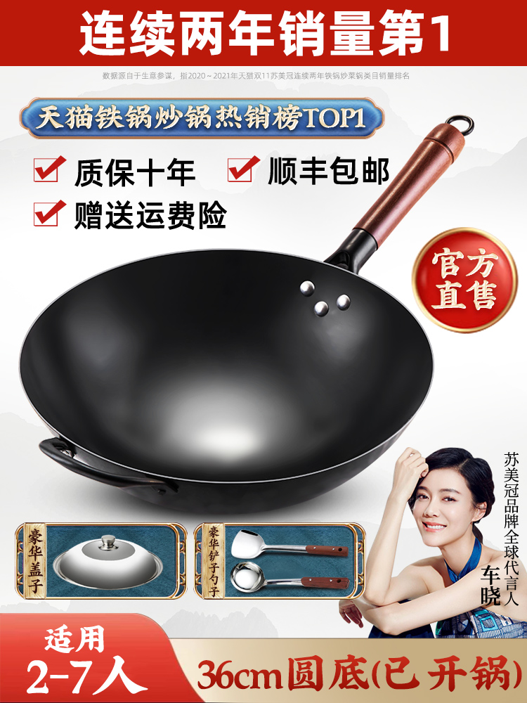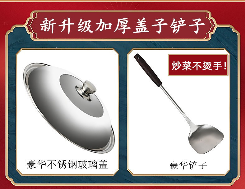 • 36CM 웍 + 디럭스 뚜껑 + 디럭스 주걱 [냄비가 열려 있음] [두껍고 품질이 좋음]