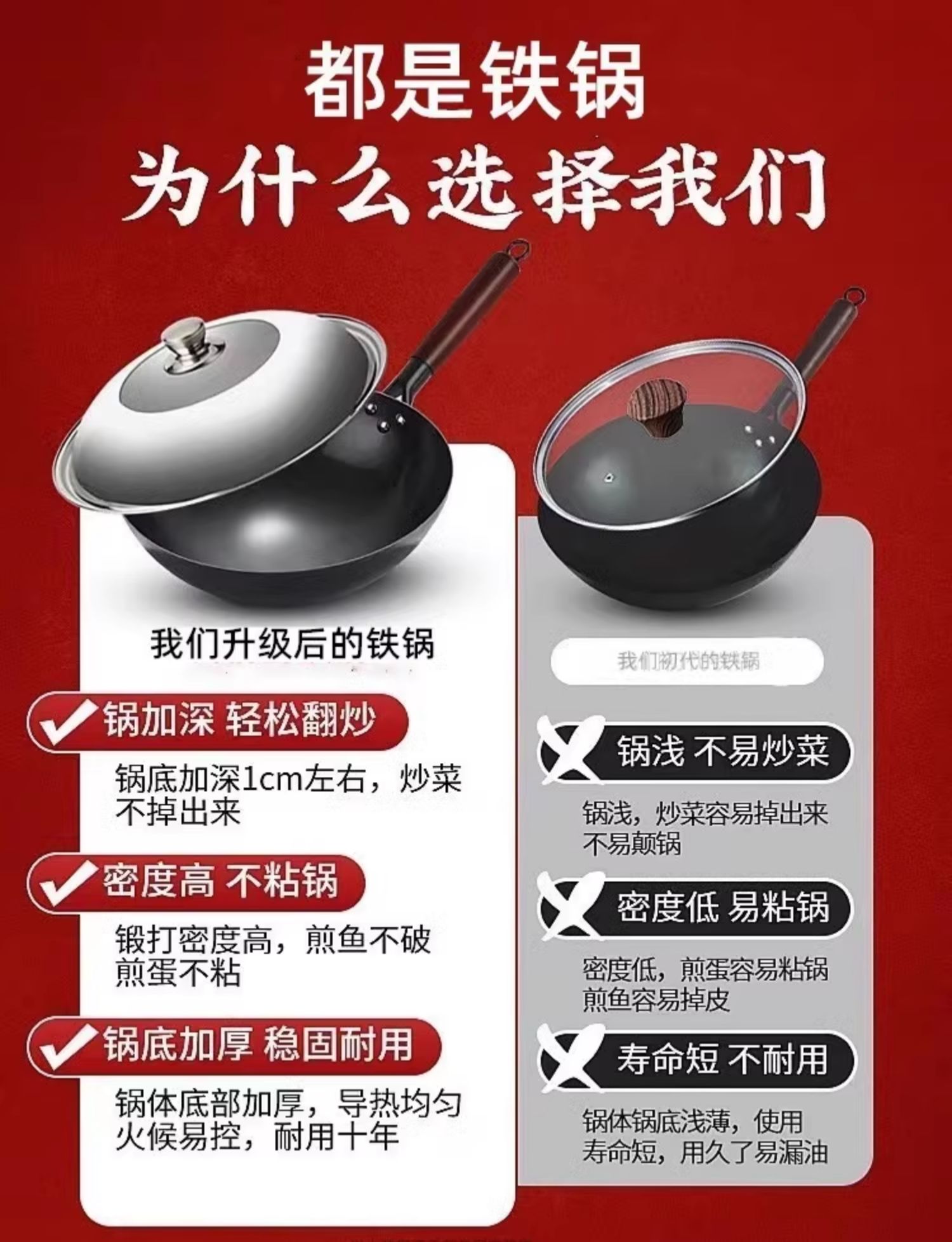 Wok 전통적인 철 냄비 플래그십 구식 Wok 가정용 비 스틱 팬 코팅 가스 스토브스토어 가기