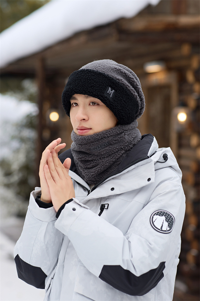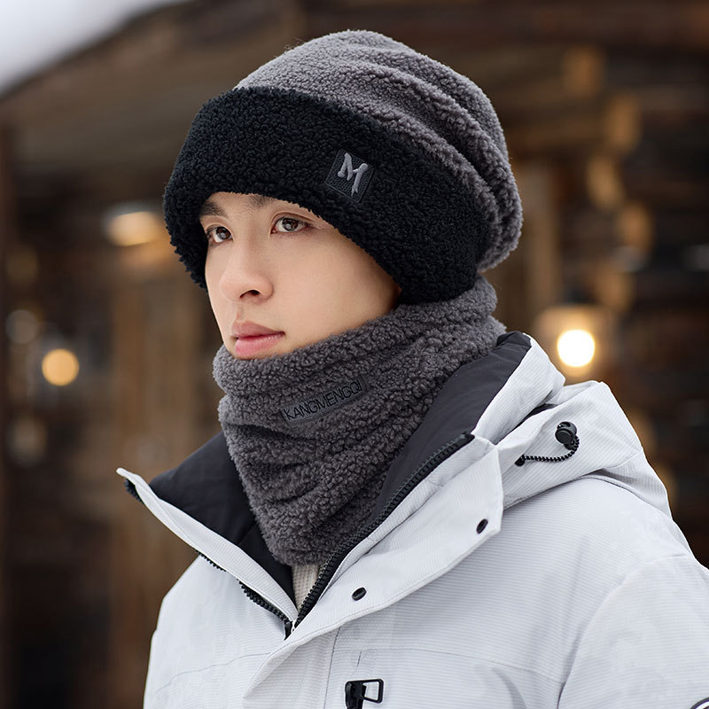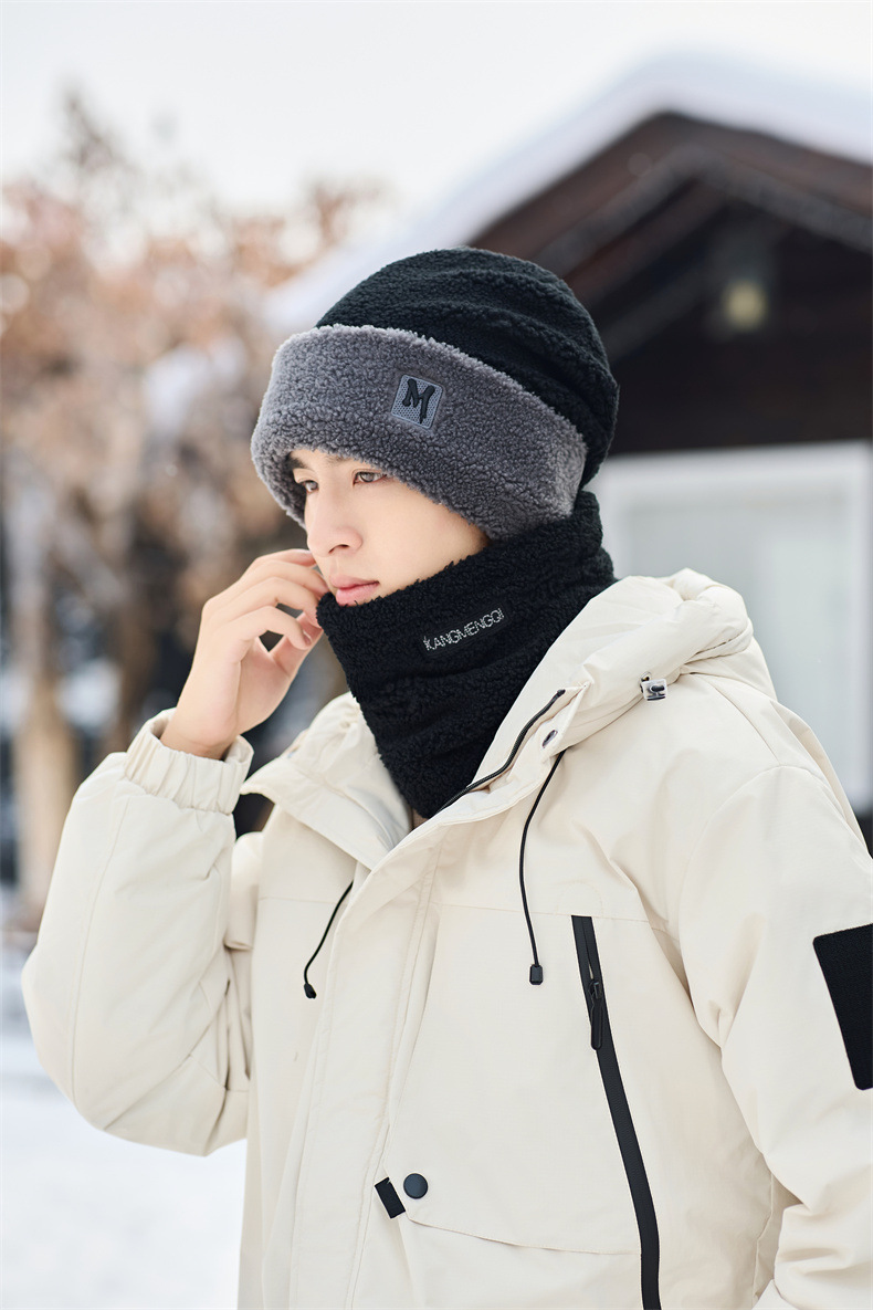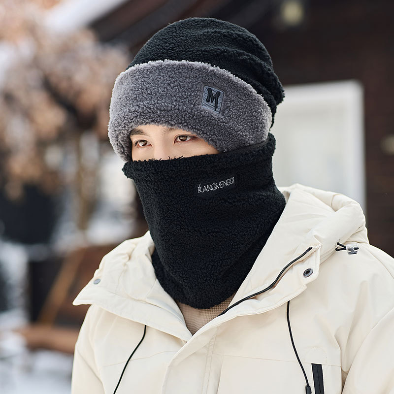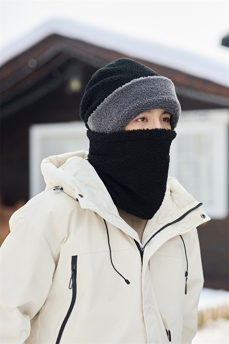 남성용 모자 2024 겨울 두꺼운 보온 목 보호 스카프 모자 플러시 안감 방한 자전거용 방풍 후드 모자