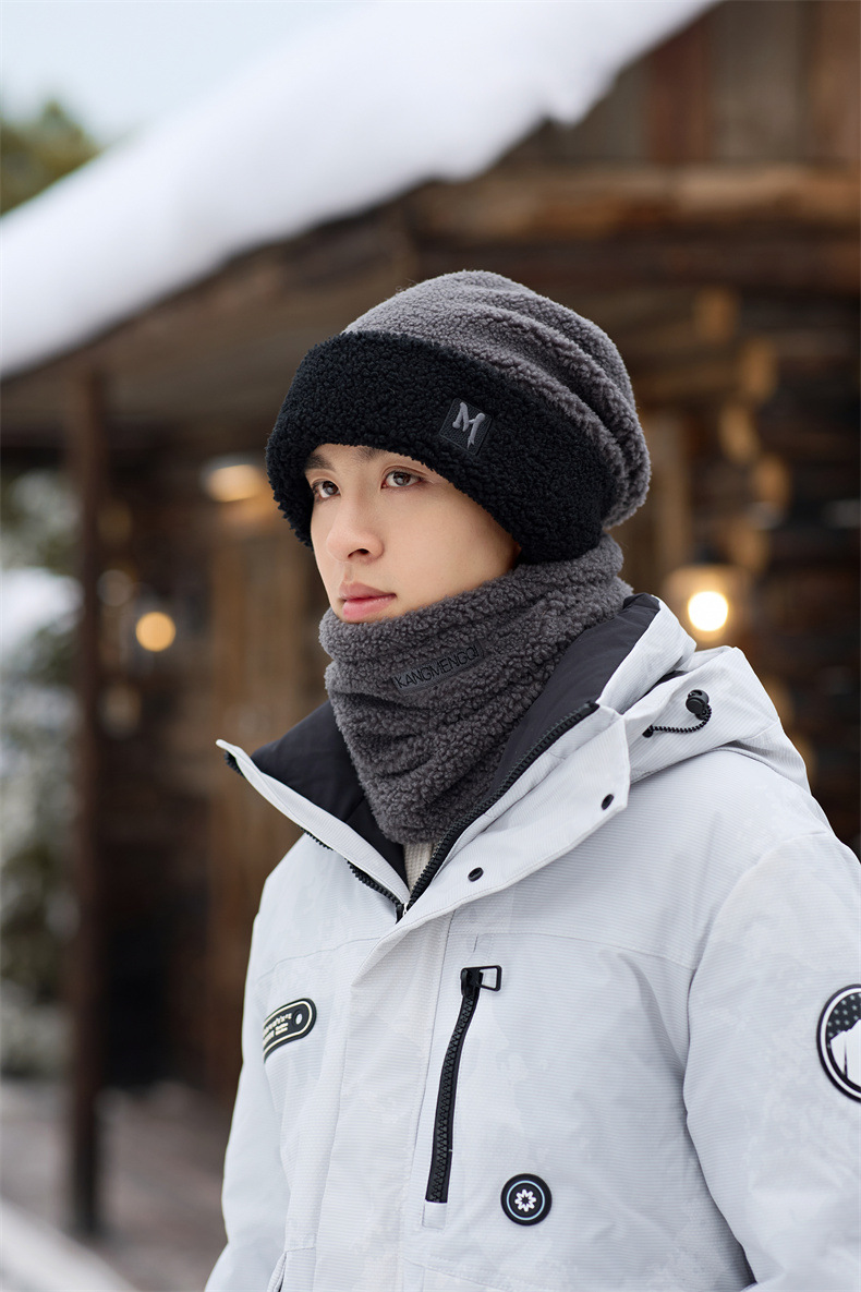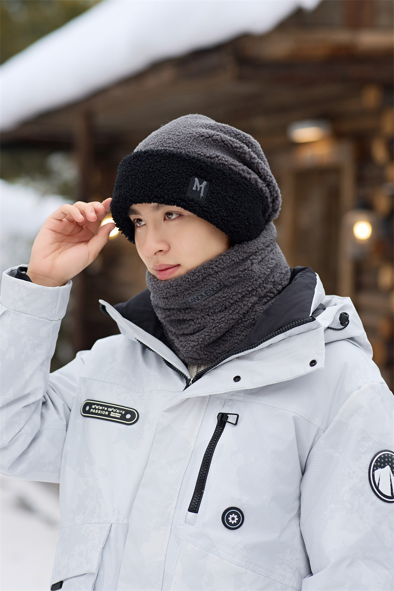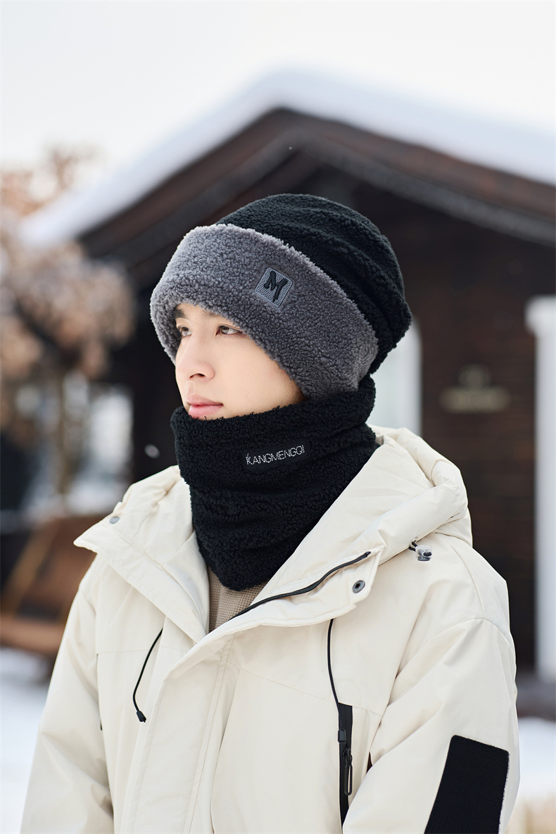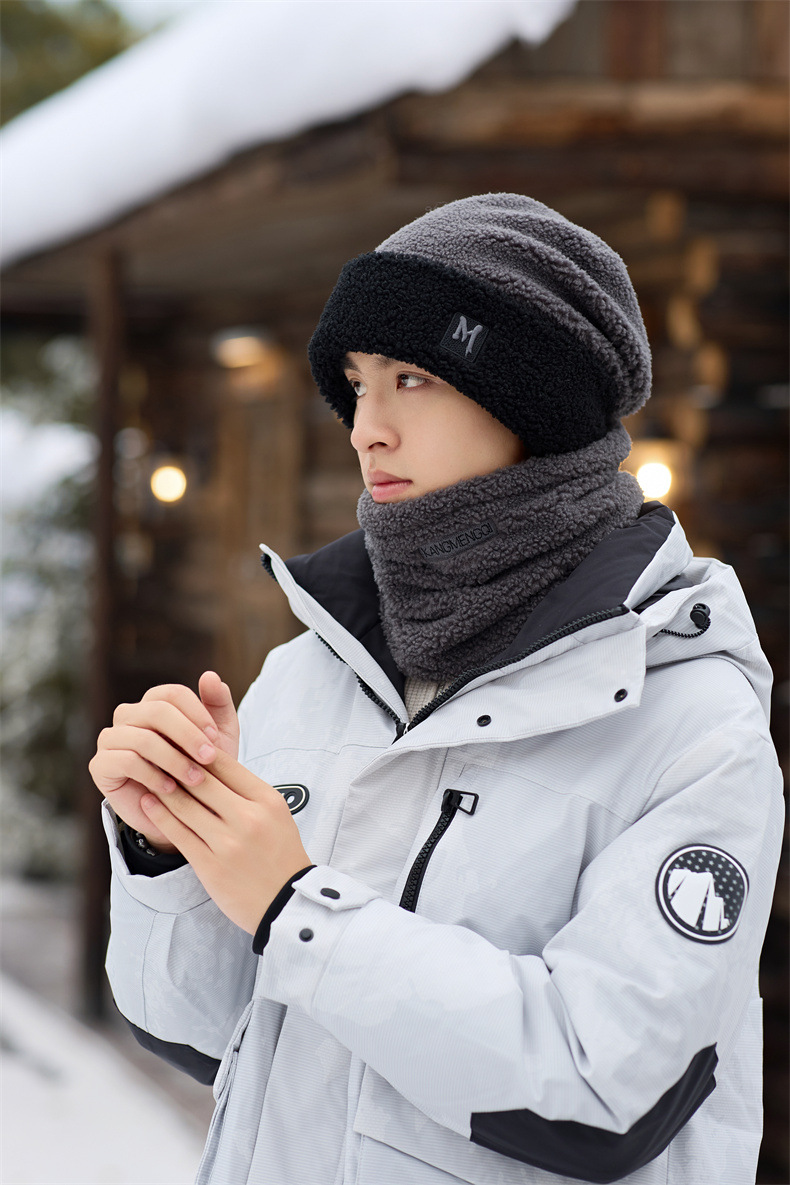 남성용 모자 2024 겨울 두꺼운 보온 목 보호 스카프 모자 플러시 안감 방한 자전거용 방풍 후드 모자