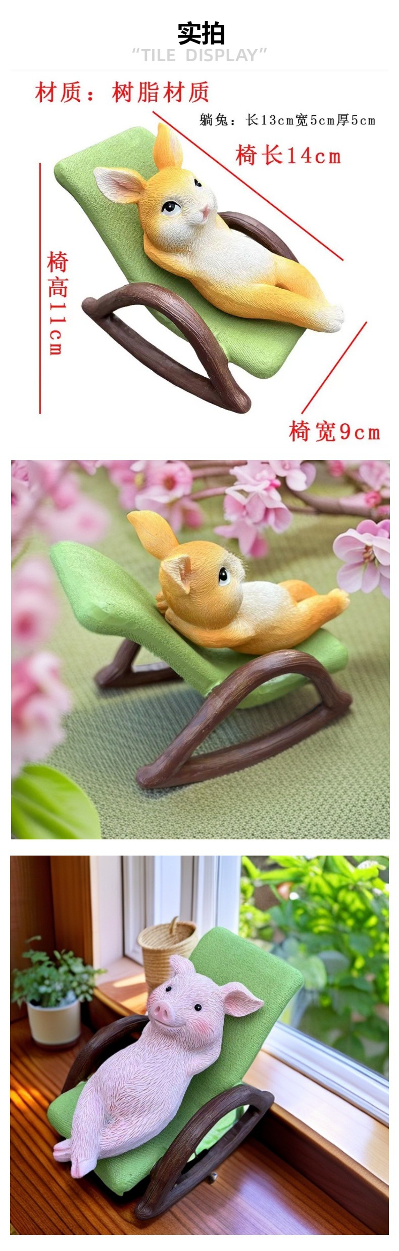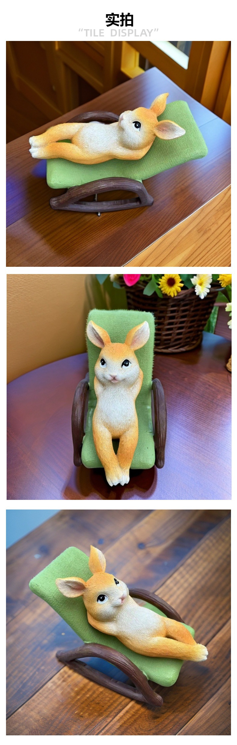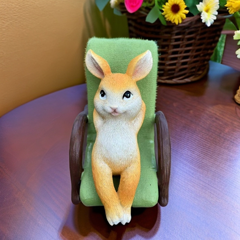 국경 간 야외 안뜰 정원 풍경 레이아웃 시뮬레이션 동물 조각 수지 흔들 의자 거짓말 토끼 장식