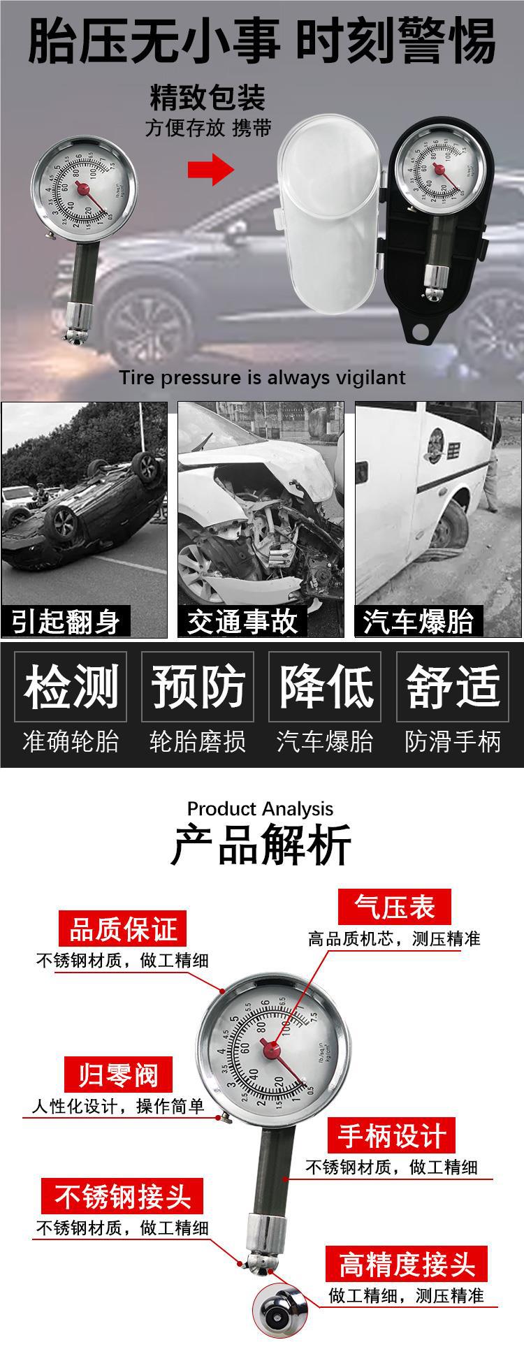 • 고정밀 휴대용 타이어 압력 게이지(금속 버전)