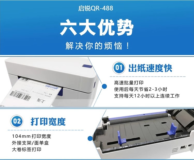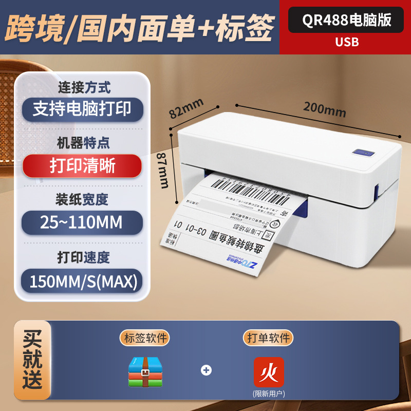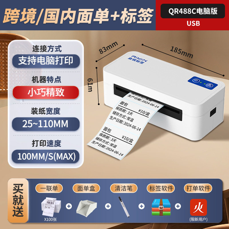 Qirui QR488 익스프레스 프린터 하나 및 두 개의 유나이티드 전자 상거래 직면 국경 간 아마존 FBA 고속 단일 기계스토어 가기