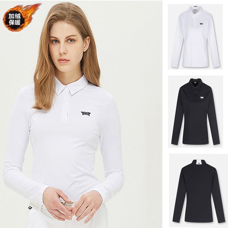 신상품 봄, 가을 여성 골프 의류 긴팔 벨벳 따뜻하고 방한 옷깃 티셔츠 스트레치 스포츠 저지스토어 가기