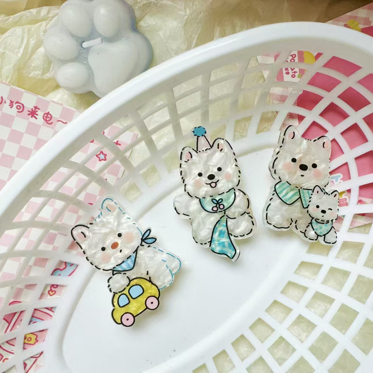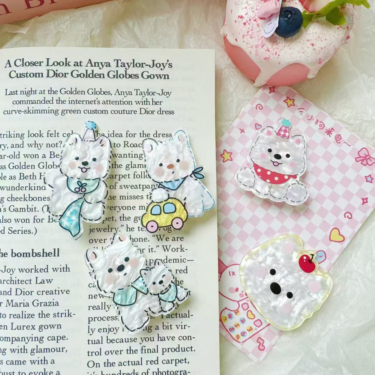 새로운 아크릴 웨스트 하이랜드 강아지 헤어핀 달콤한 귀여운 소녀 뱅 사이드 클립 만화 헤어핀 헤어 액세서리