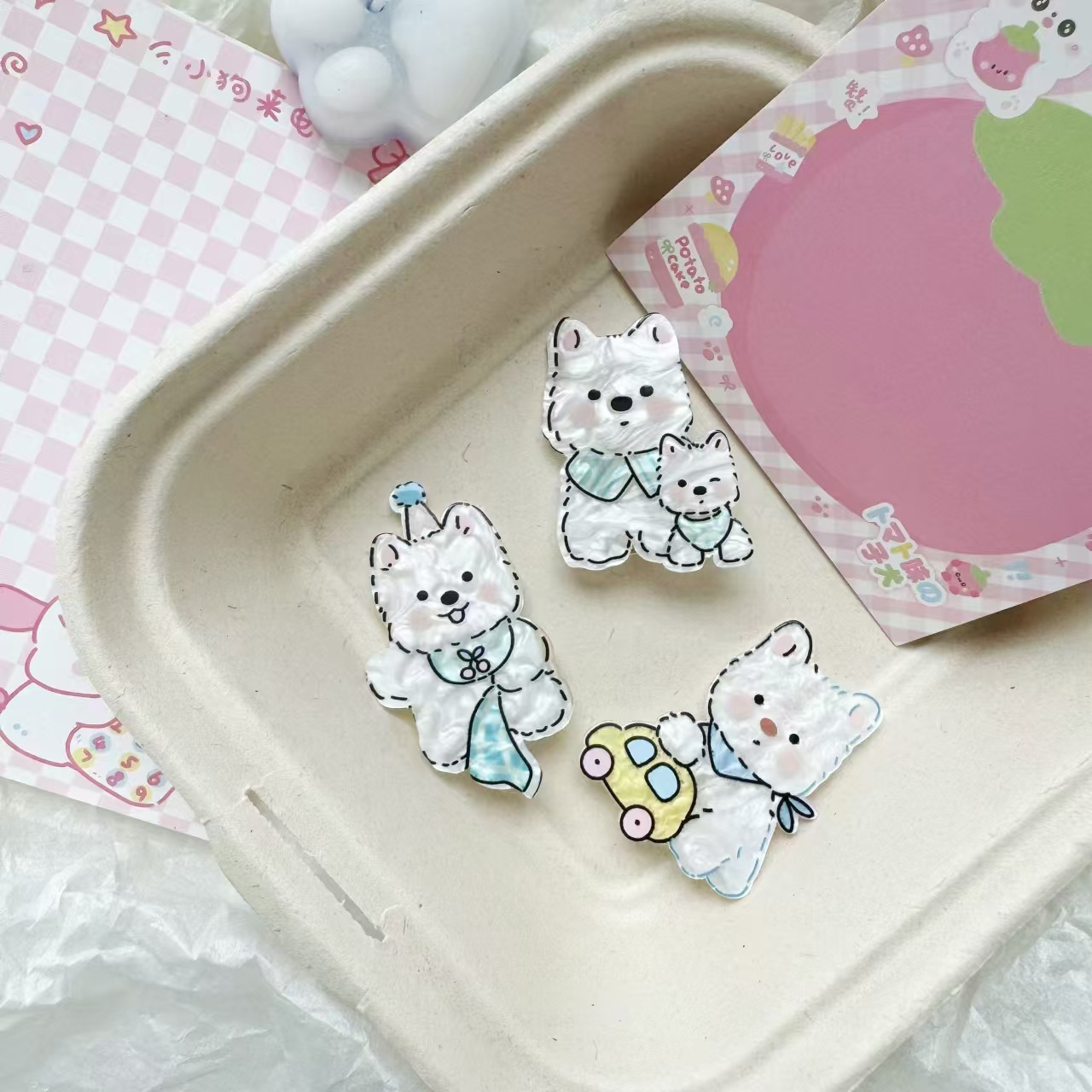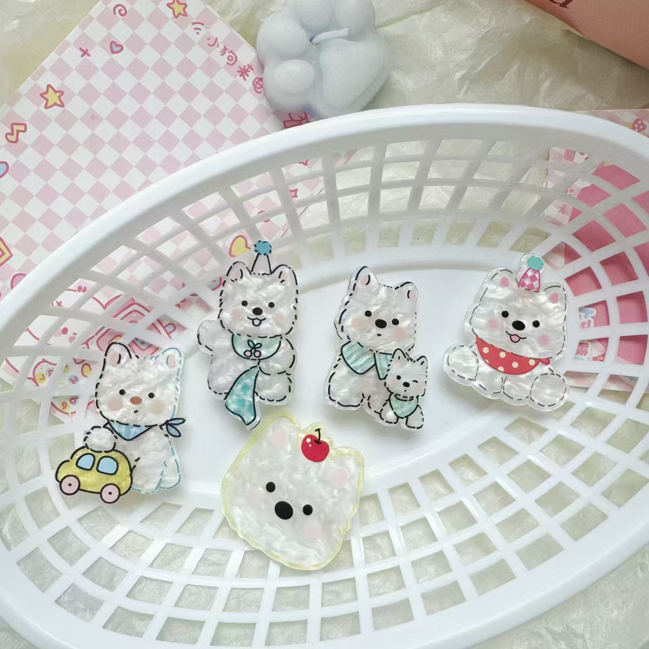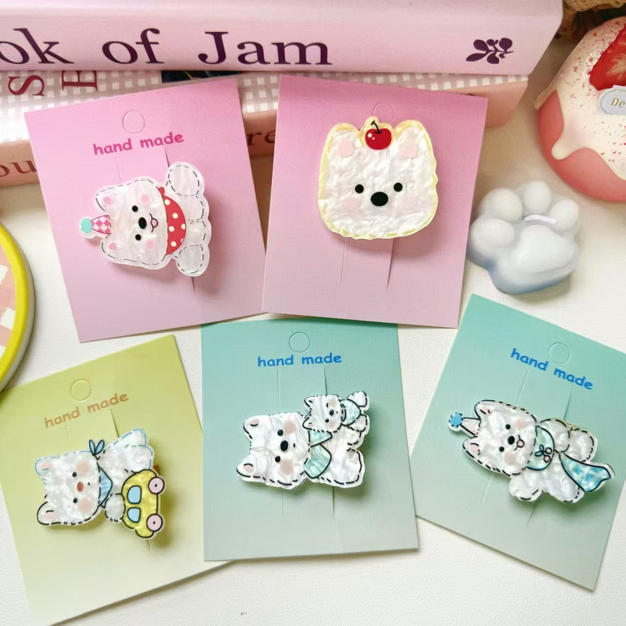 새로운 아크릴 웨스트 하이랜드 강아지 헤어핀 달콤한 귀여운 소녀 뱅 사이드 클립 만화 헤어핀 헤어 액세서리스토어 가기