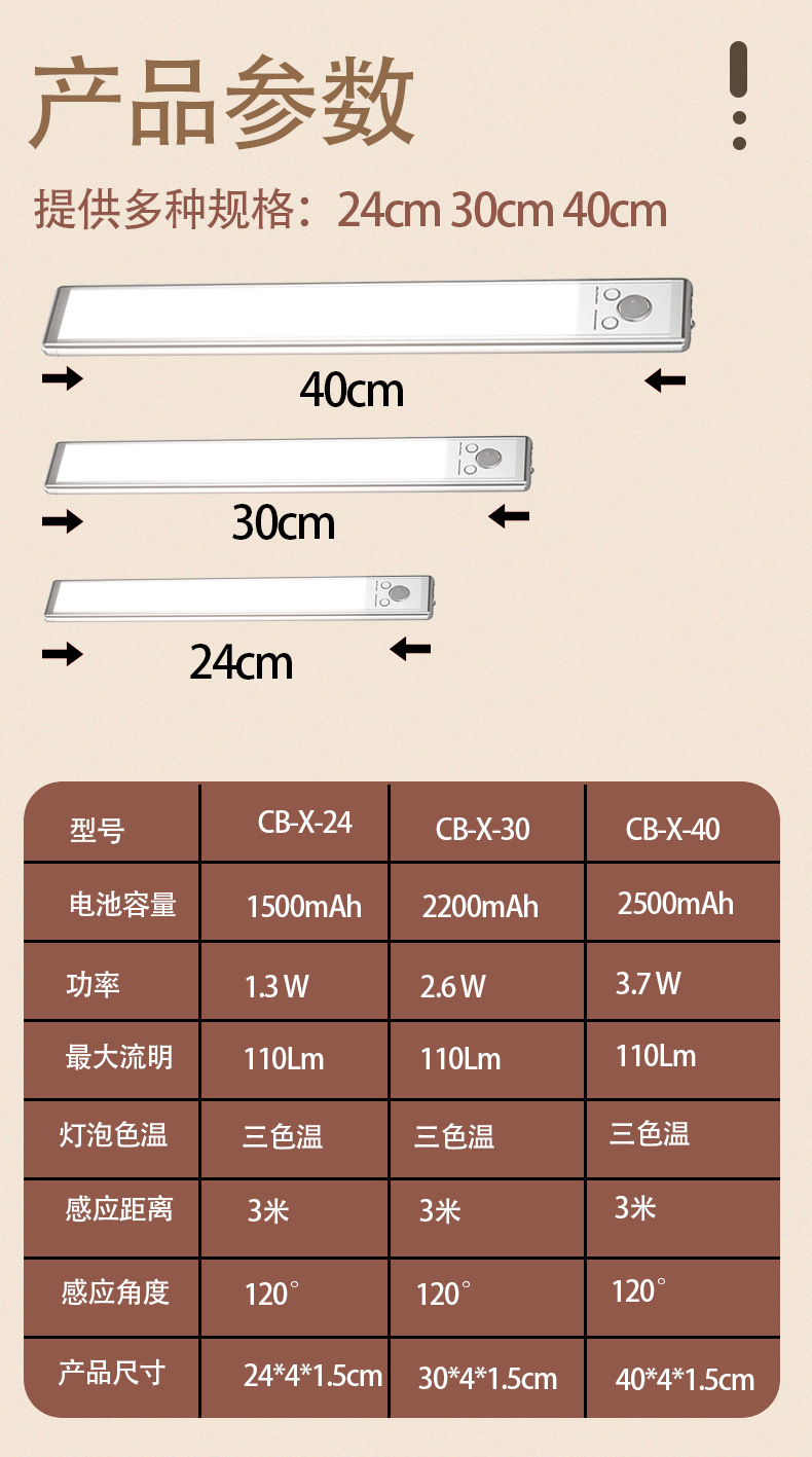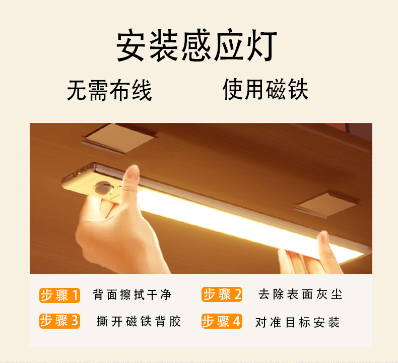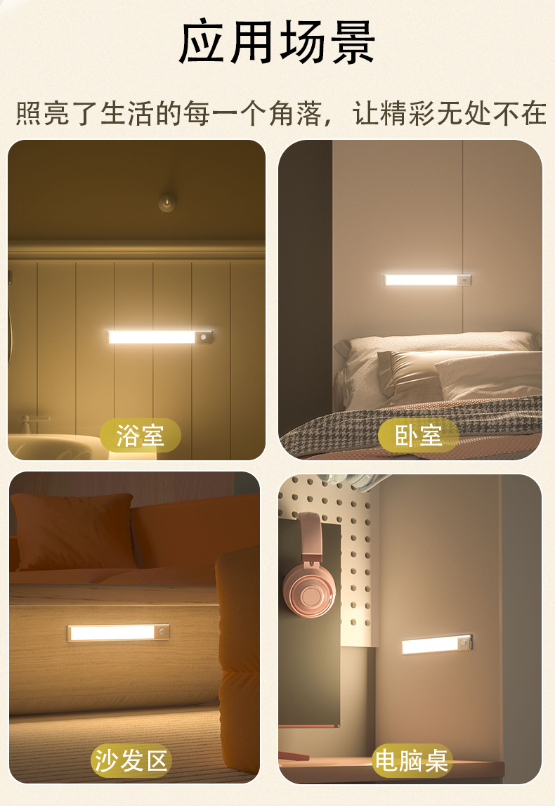 국경 led 캐비닛 빛 인체 유도 충전 야간 조명 책상 램프 주방 침실 구멍이없는 램프 라이트 바 램프스토어 가기
