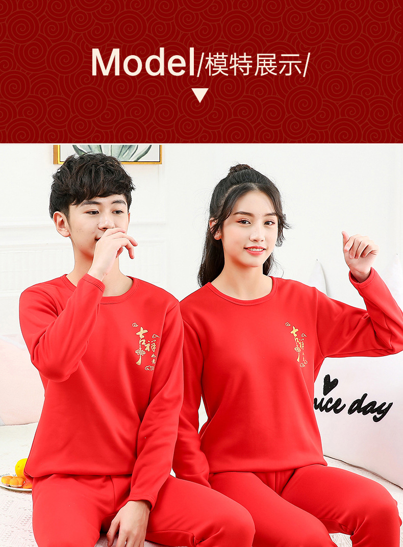 소년 소녀를위한 어린이 가을 옷과 바지 기모 레드 라이프 년 잠옷 홈 옷 가을과 겨울 청소년 열 속옷스토어 가기