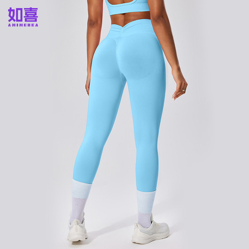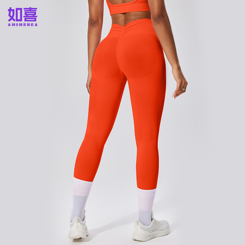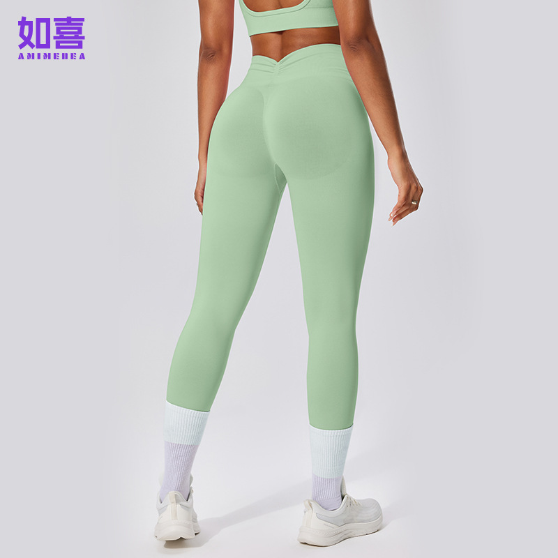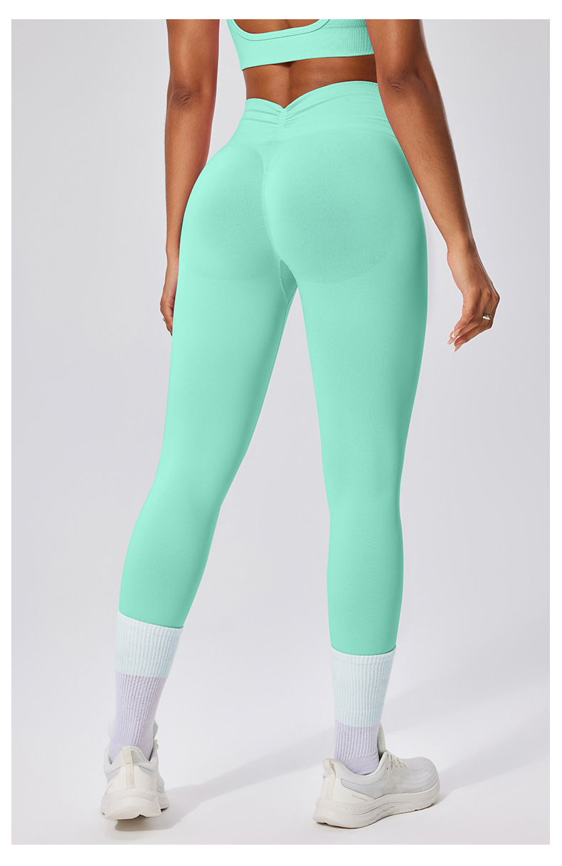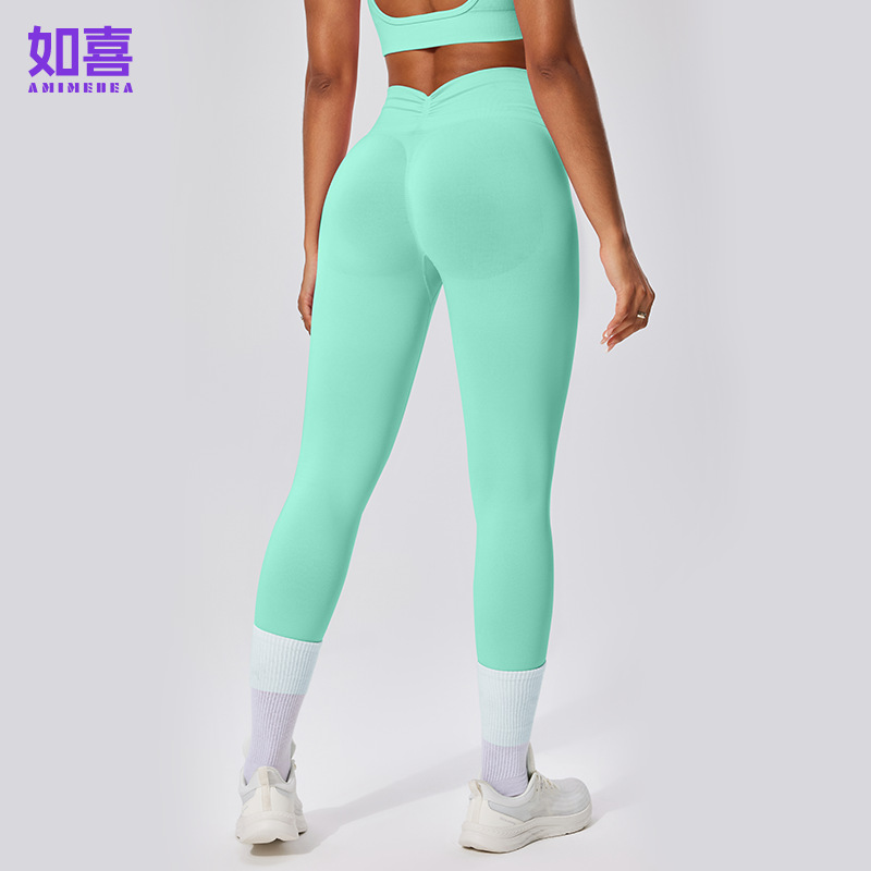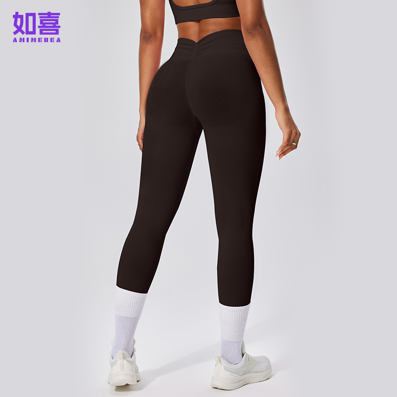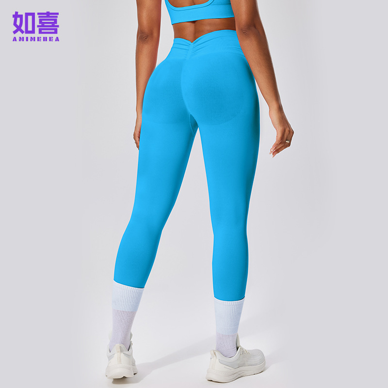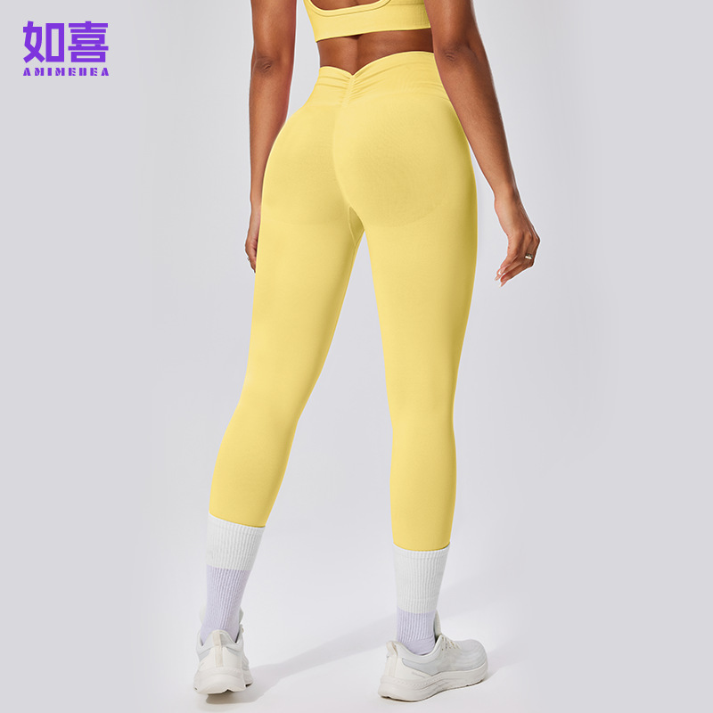 유럽 및 미국 스타일 심리스 하이웨이스트 9부 팬츠, 주름 장식 힙업 피트니스 팬츠, 여성 요가 롱 팬츠, 스포츠 타이츠, 해외 직구 전용스토어 가기