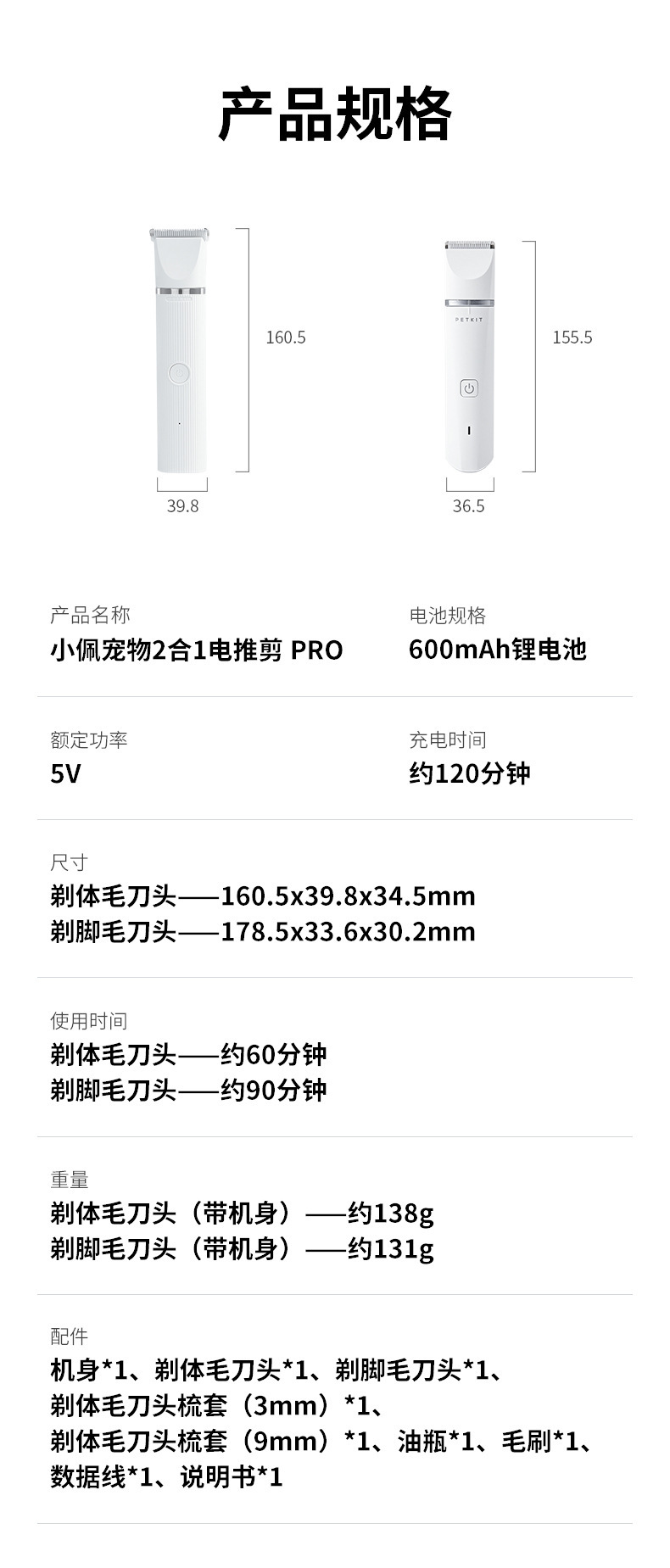 • 2-in-1 전기 이발기(PRO) + LED 손톱깎이 + 제모 바늘 빗