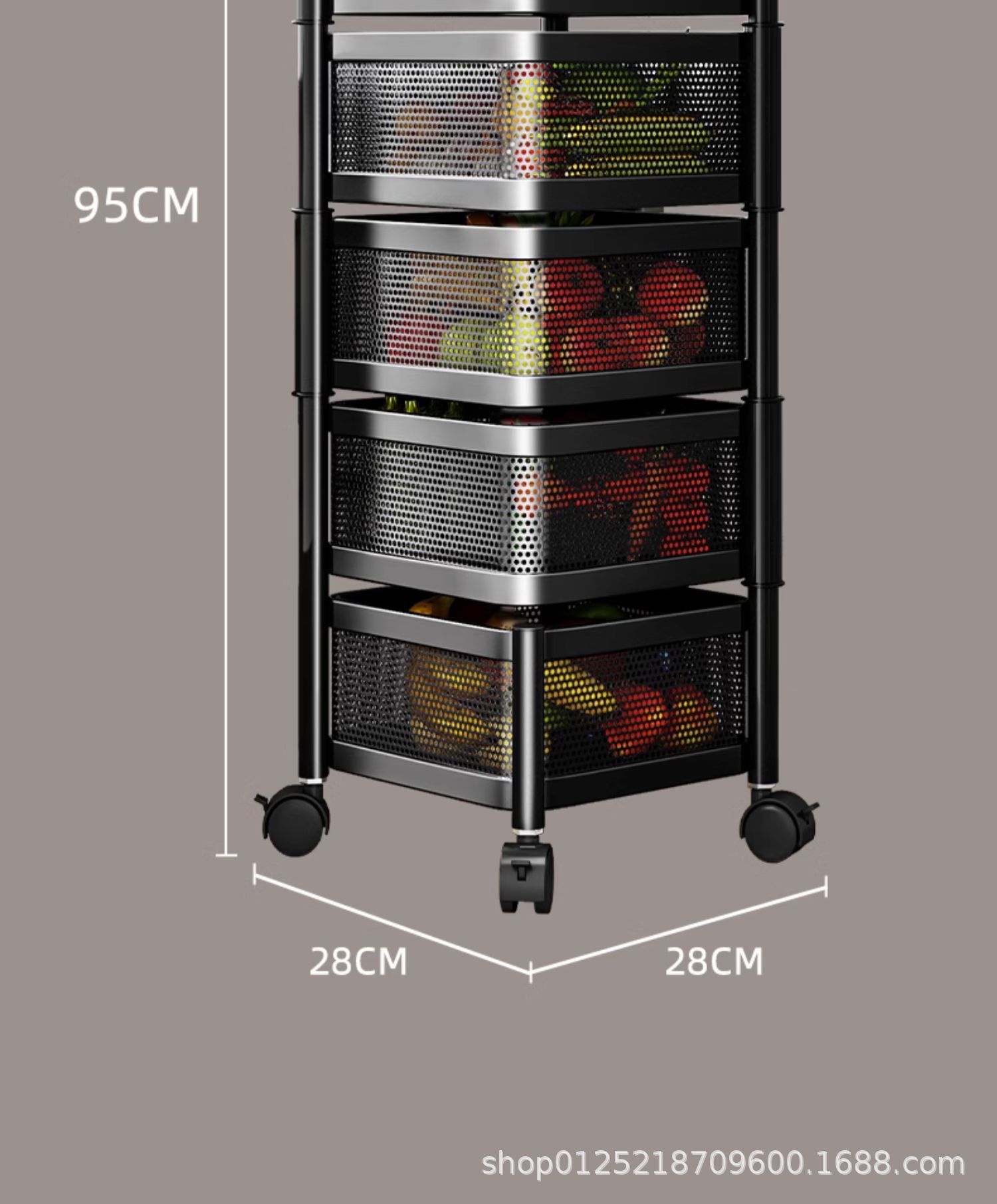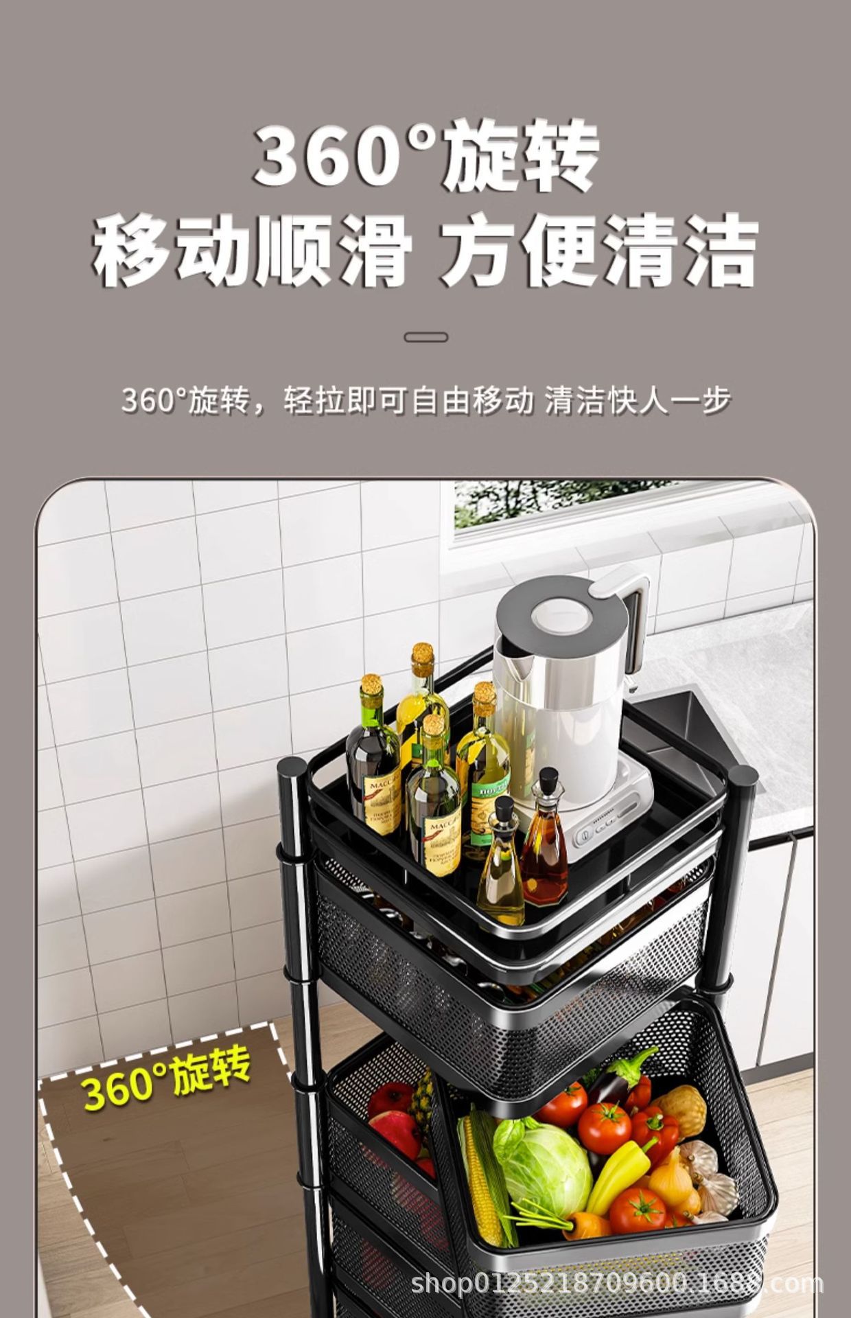맞춤형 주방 회전 스토리지 랙 홈 플로어 스탠딩 거실 스낵 스토리지 랙 야채 바구니 다층 이동식 트롤리