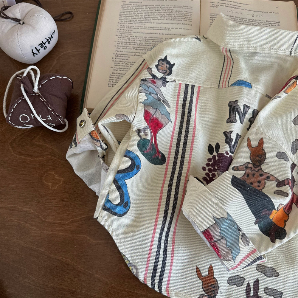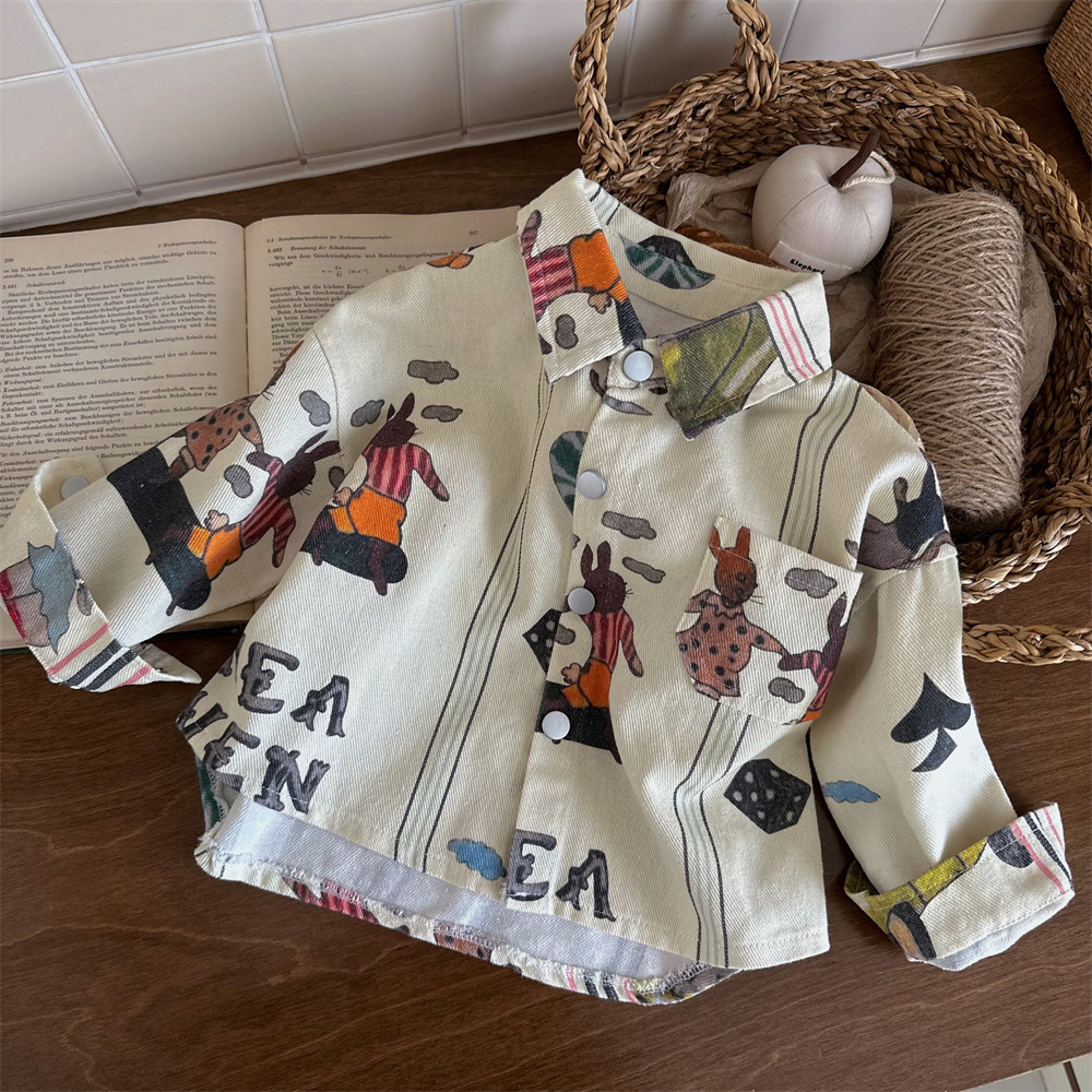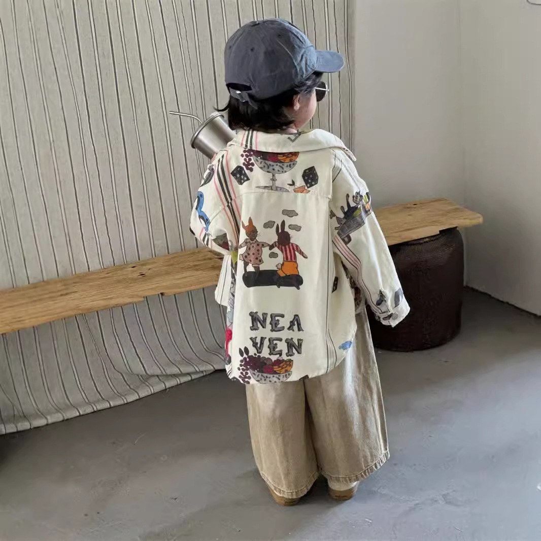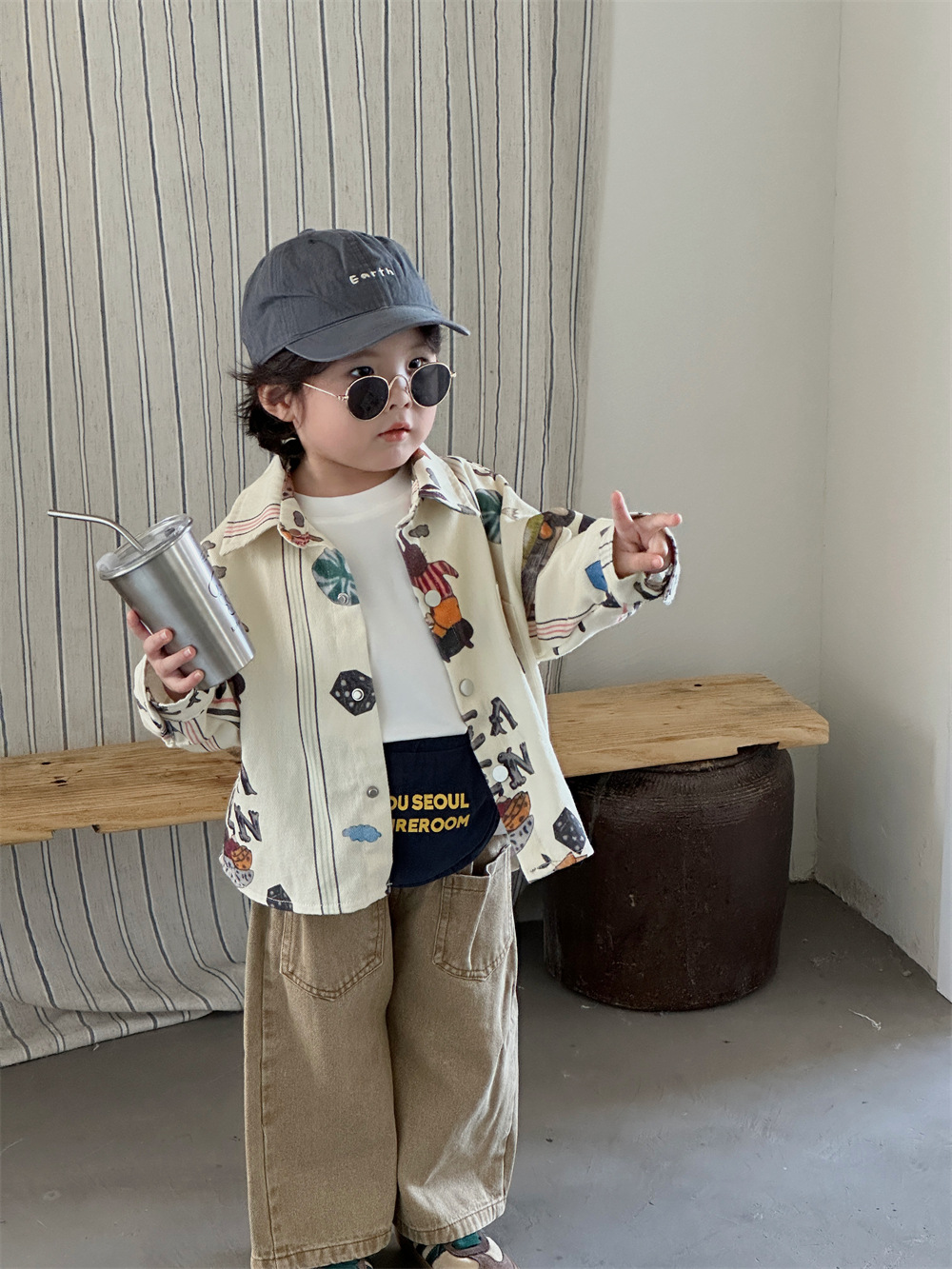 소년 전체 인쇄 낙서 셔츠 2024 새로운 한국 스타일 봄과 가을 새로운 잘 생긴 셔츠 어린이 캐주얼 재킷