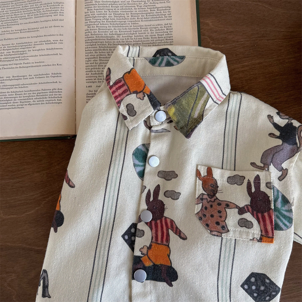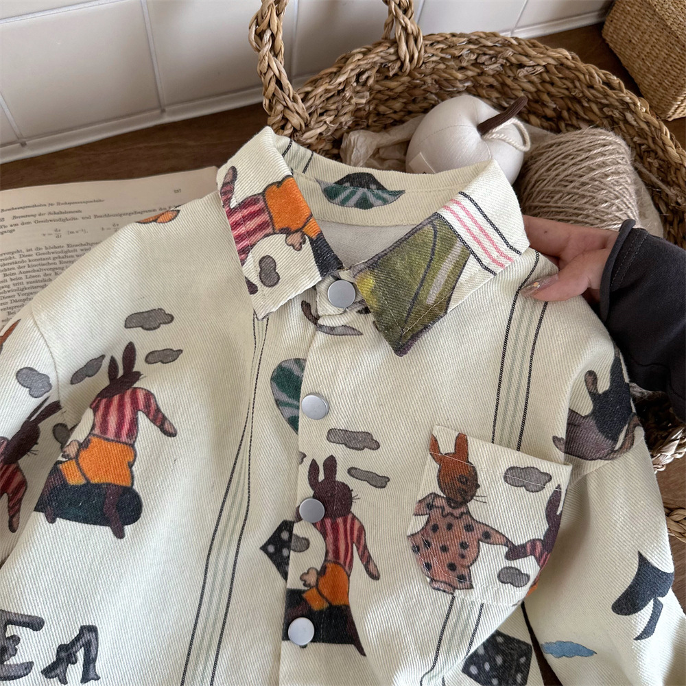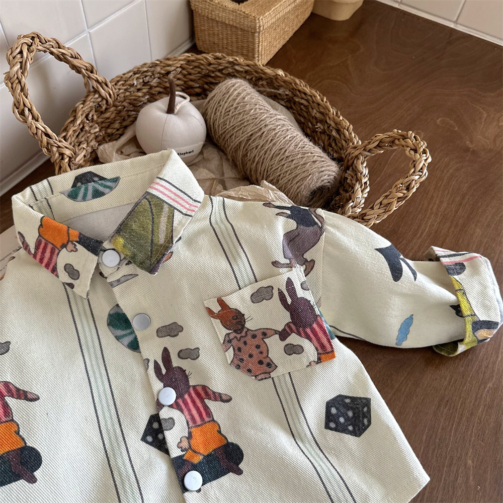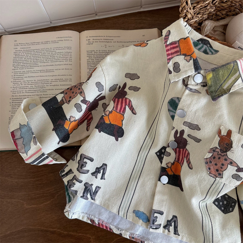 소년 전체 인쇄 낙서 셔츠 2024 새로운 한국 스타일 봄과 가을 새로운 잘 생긴 셔츠 어린이 캐주얼 재킷
