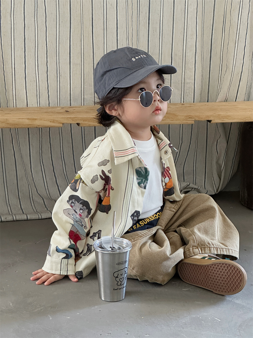 소년 전체 인쇄 낙서 셔츠 2024 새로운 한국 스타일 봄과 가을 새로운 잘 생긴 셔츠 어린이 캐주얼 재킷스토어 가기