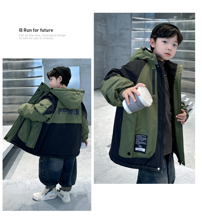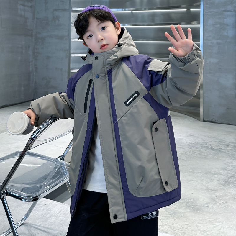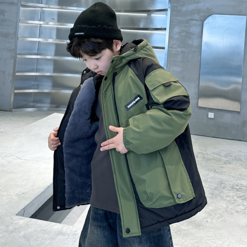 남학생 기모 재킷 2024 년 가을과 겨울 새로운 중대형 어린이 서양식 두꺼운 파커 옷 어린이 따뜻한 탑 유행스토어 가기