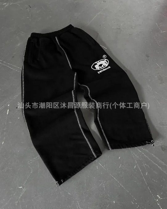 국경을 넘는 아메리칸 스트리트 더블 허리 레이스 업 캐주얼 바지 Y2K 레트로 하라주쿠 스트레이트 바지 하이 웨이스트 힙합 스포츠 바지스토어 가기