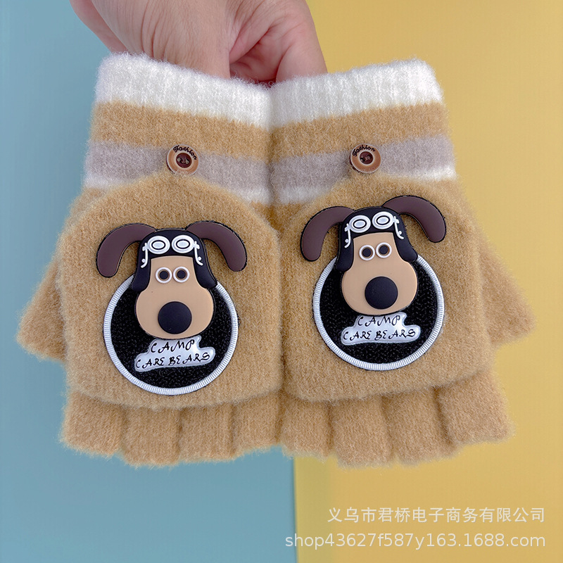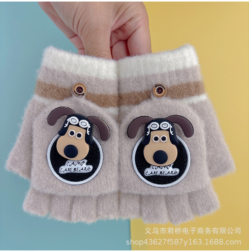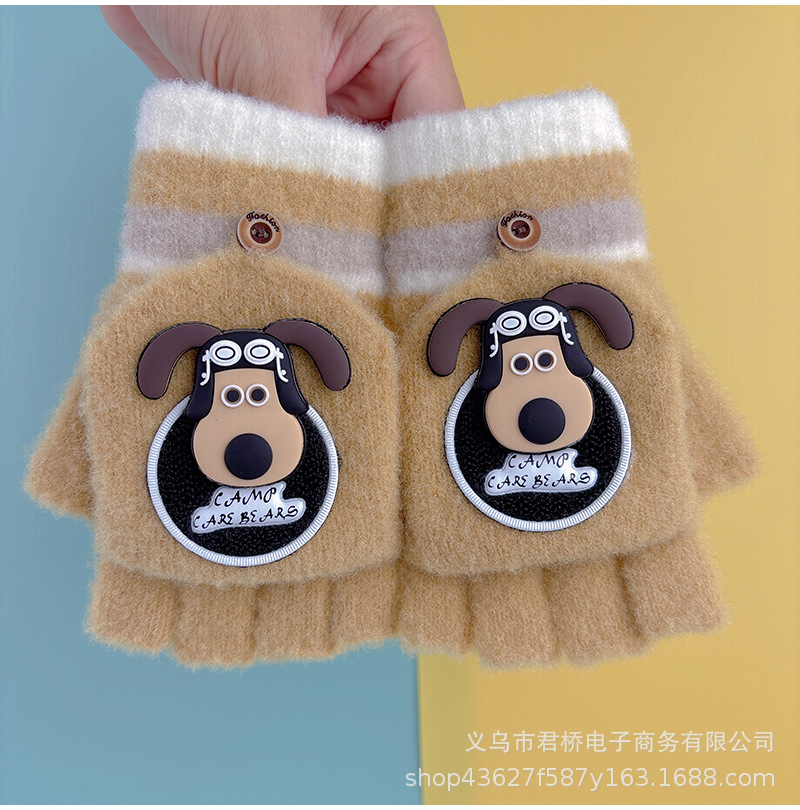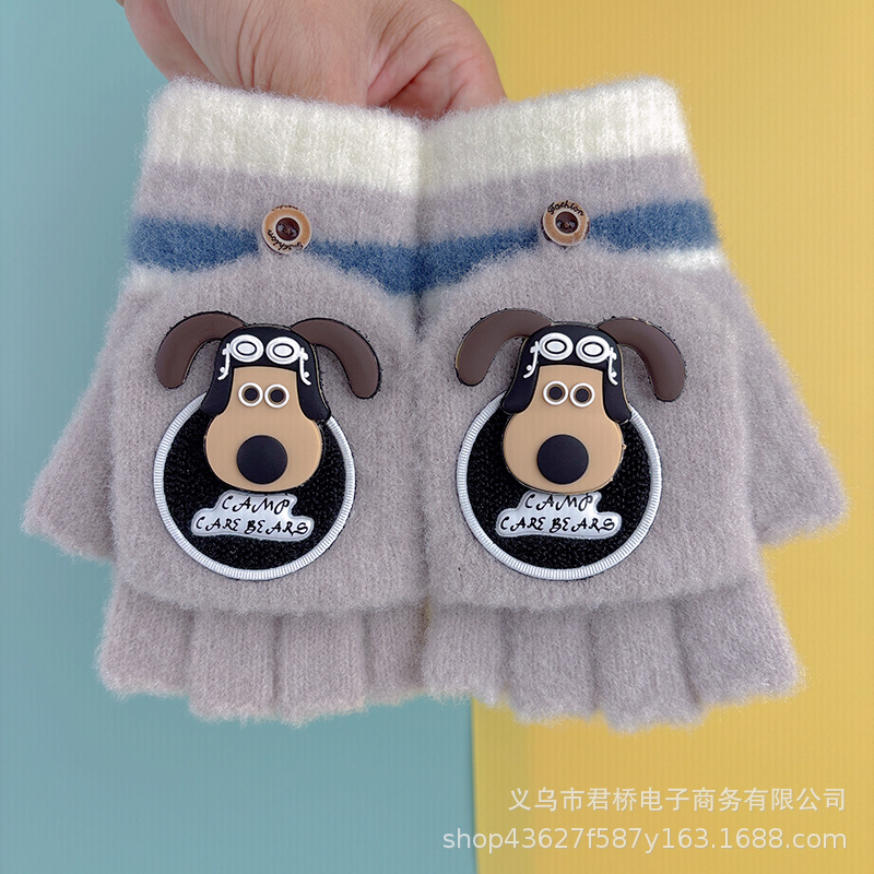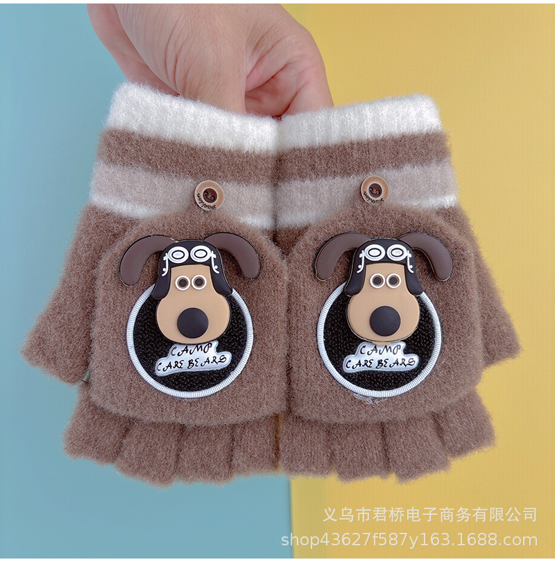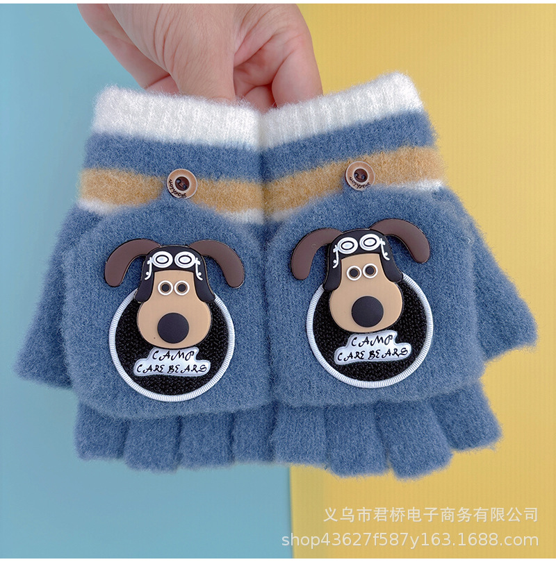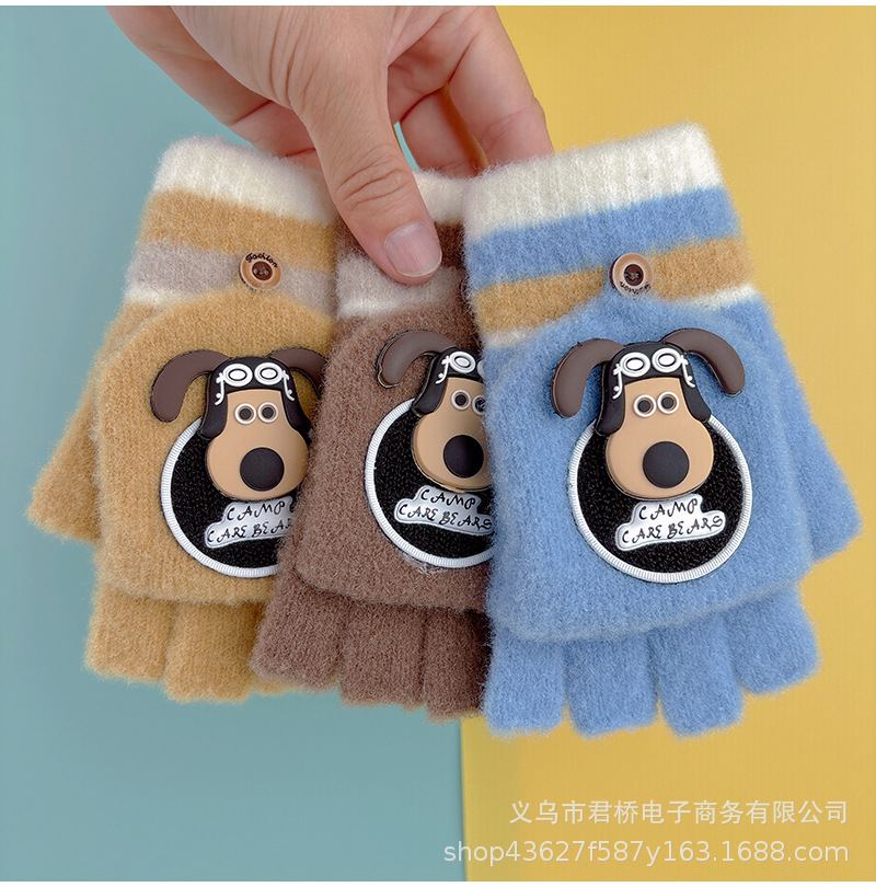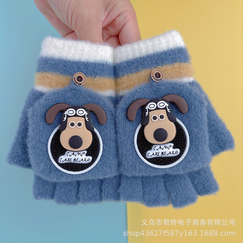 어린이 장갑 7-12 세 소년과 나이 많은 어린이 귀여운 반 손가락 플랩 학생들은 따뜻하고 차갑게 유지하기 위해 손가락을 노출스토어 가기