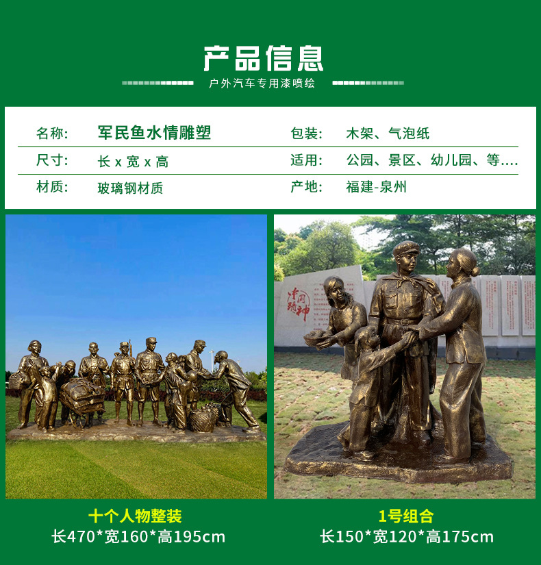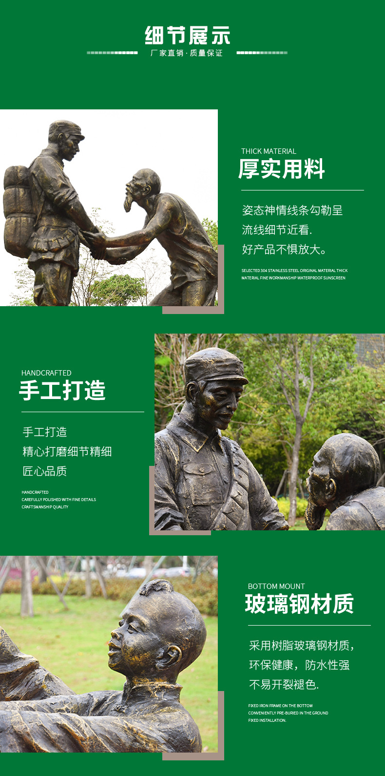 유리 섬유 강화 플라스틱 군사 및 민간 어수 상황 모방 구리 그림 붉은 육군 8 경로 육군 지원 육군 Aimin 기념관 주조 구리 조각 재고