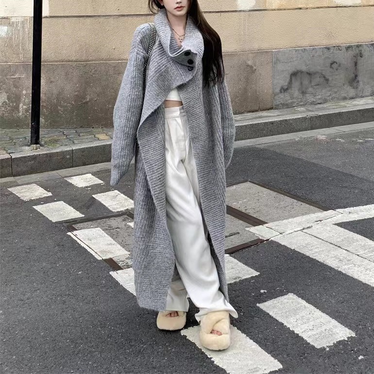 가을 겨울 여성을 위한 크로스보더 고급 니트 롱 가디건, 새로운 스타일의 윈드브레이커, 레이지 스타일의 스웨터 재킷스토어 가기