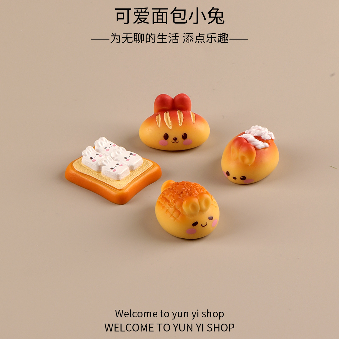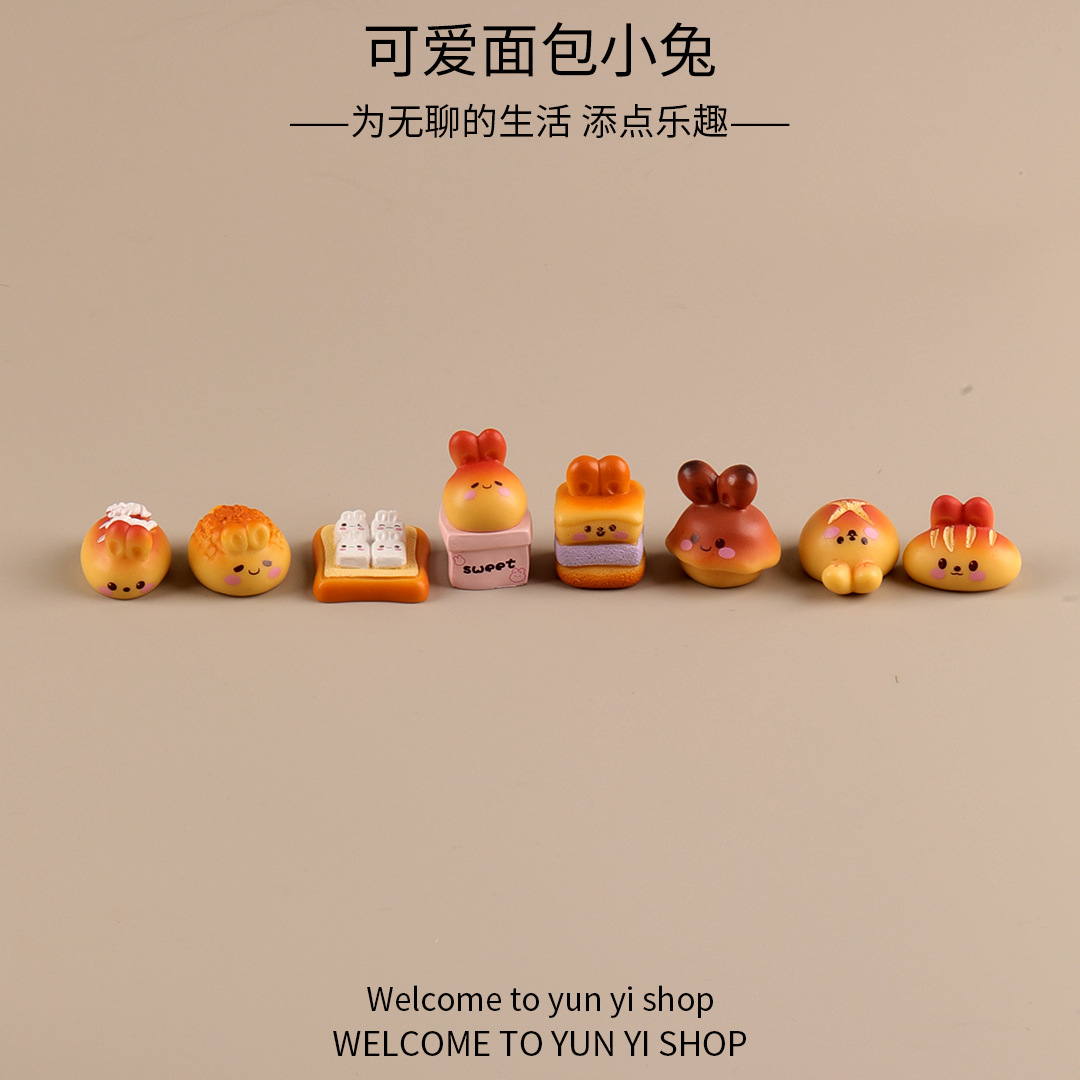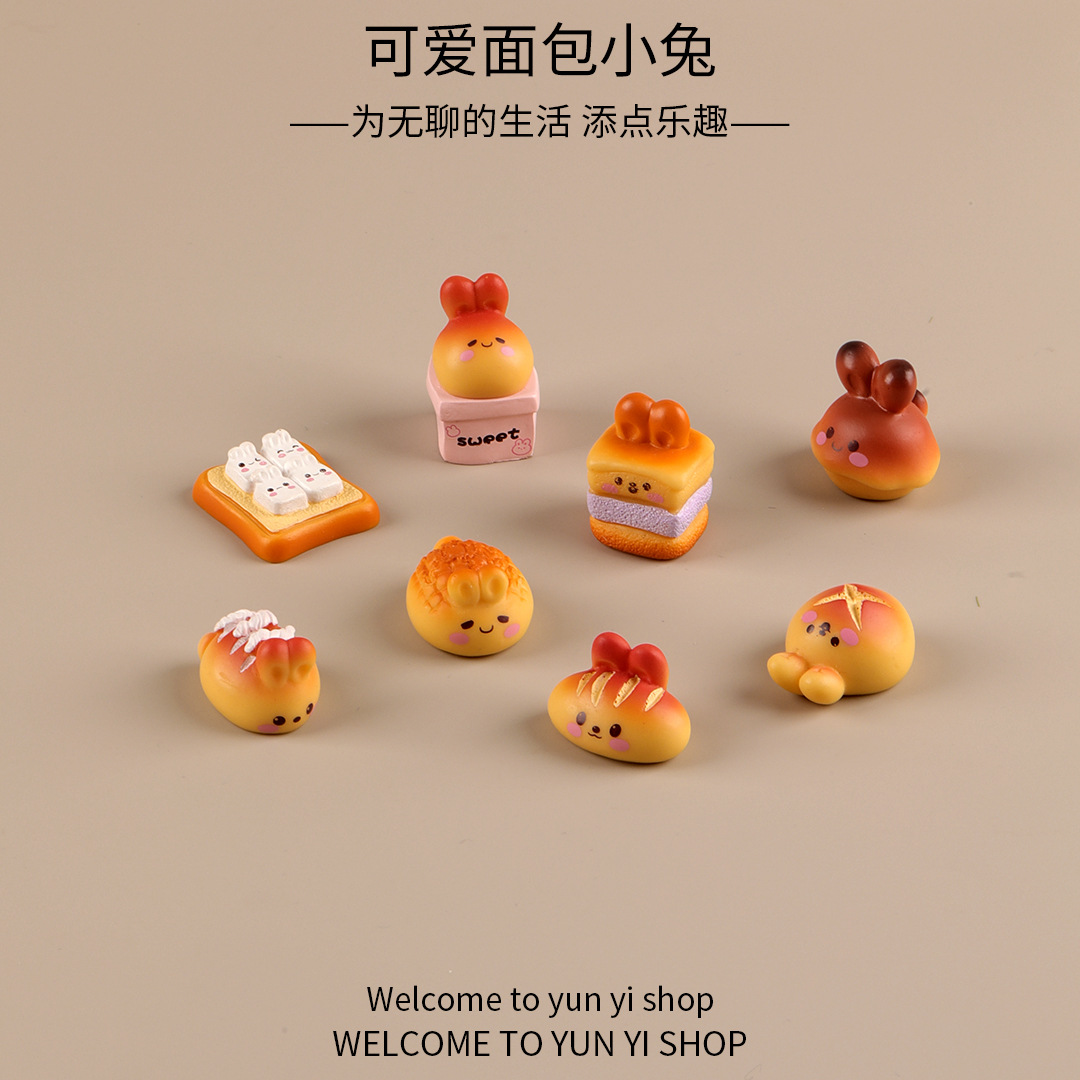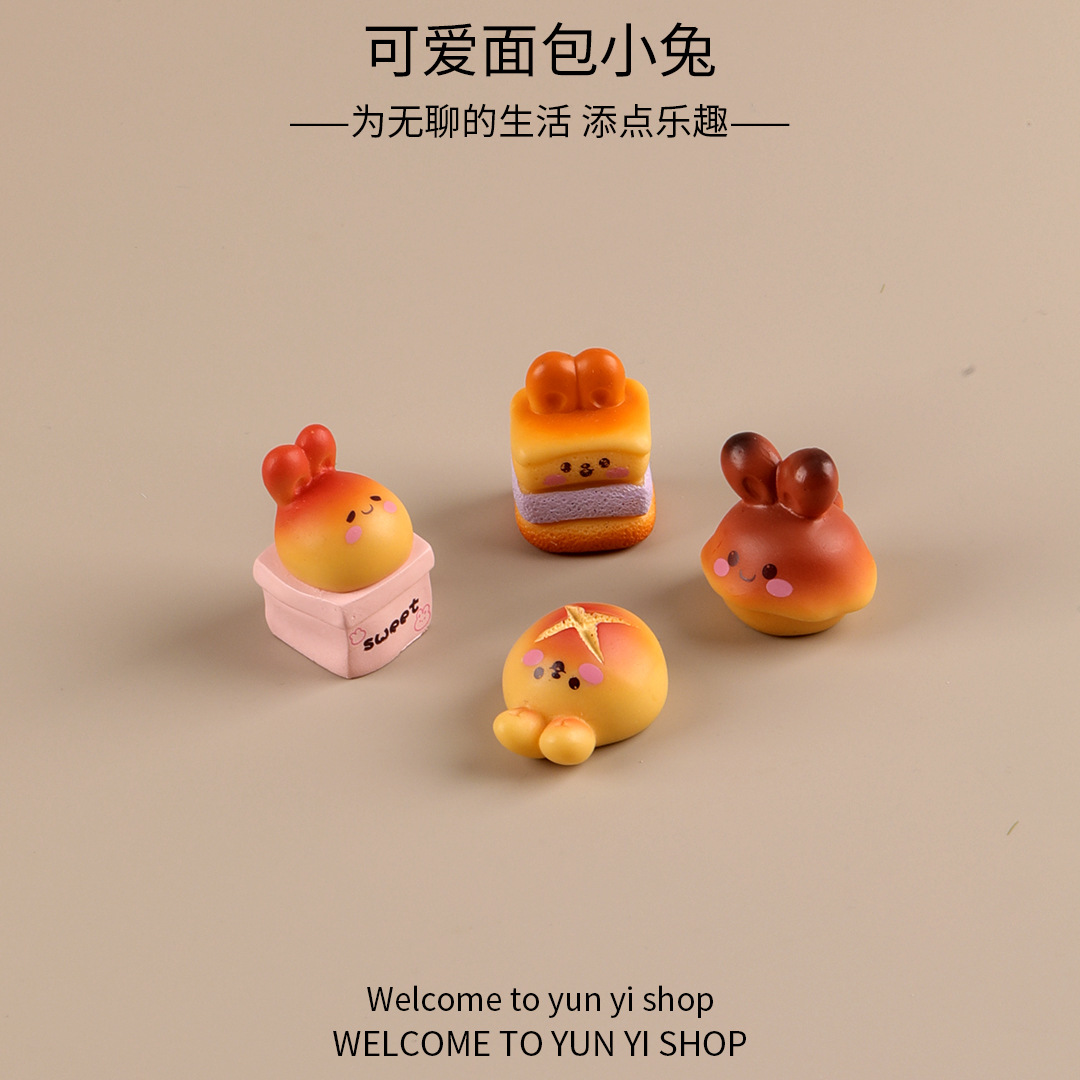 귀여운 만화 빵 토끼 마이크로 풍경 창조적 인 장식품 액세서리 자동차 데스크탑 수지 작은 장식품스토어 가기