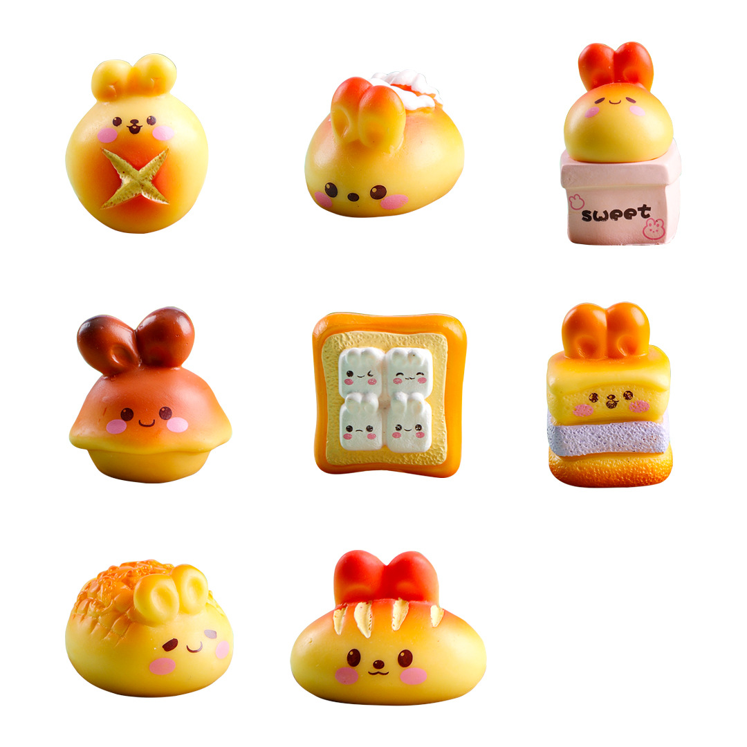 귀여운 만화 빵 토끼 마이크로 풍경 창조적 인 장식품 액세서리 자동차 데스크탑 수지 작은 장식품