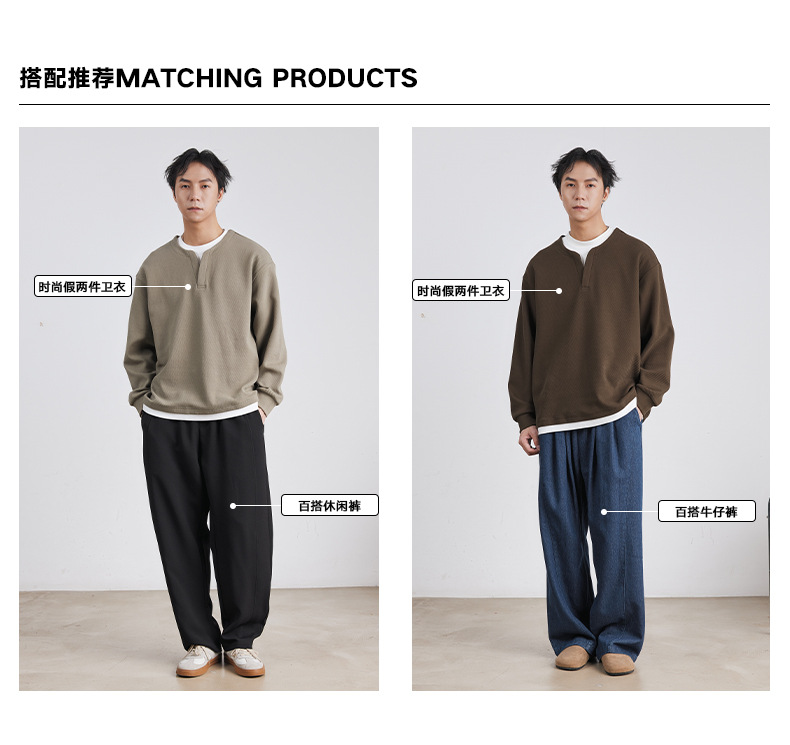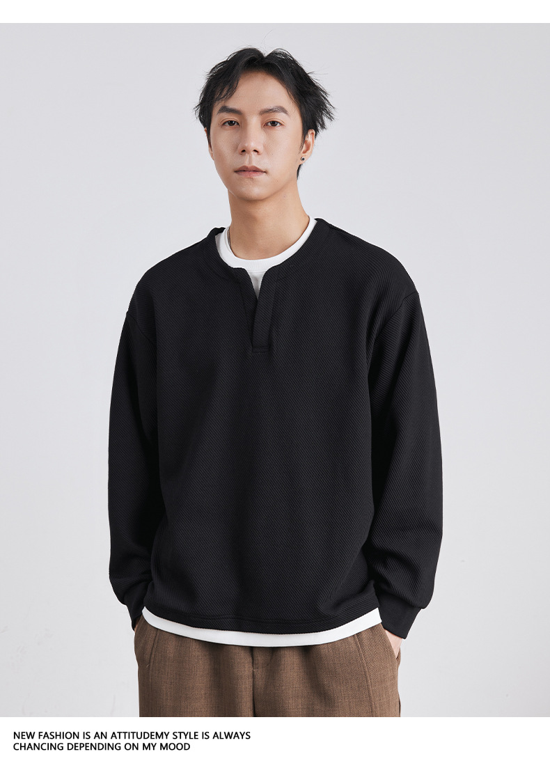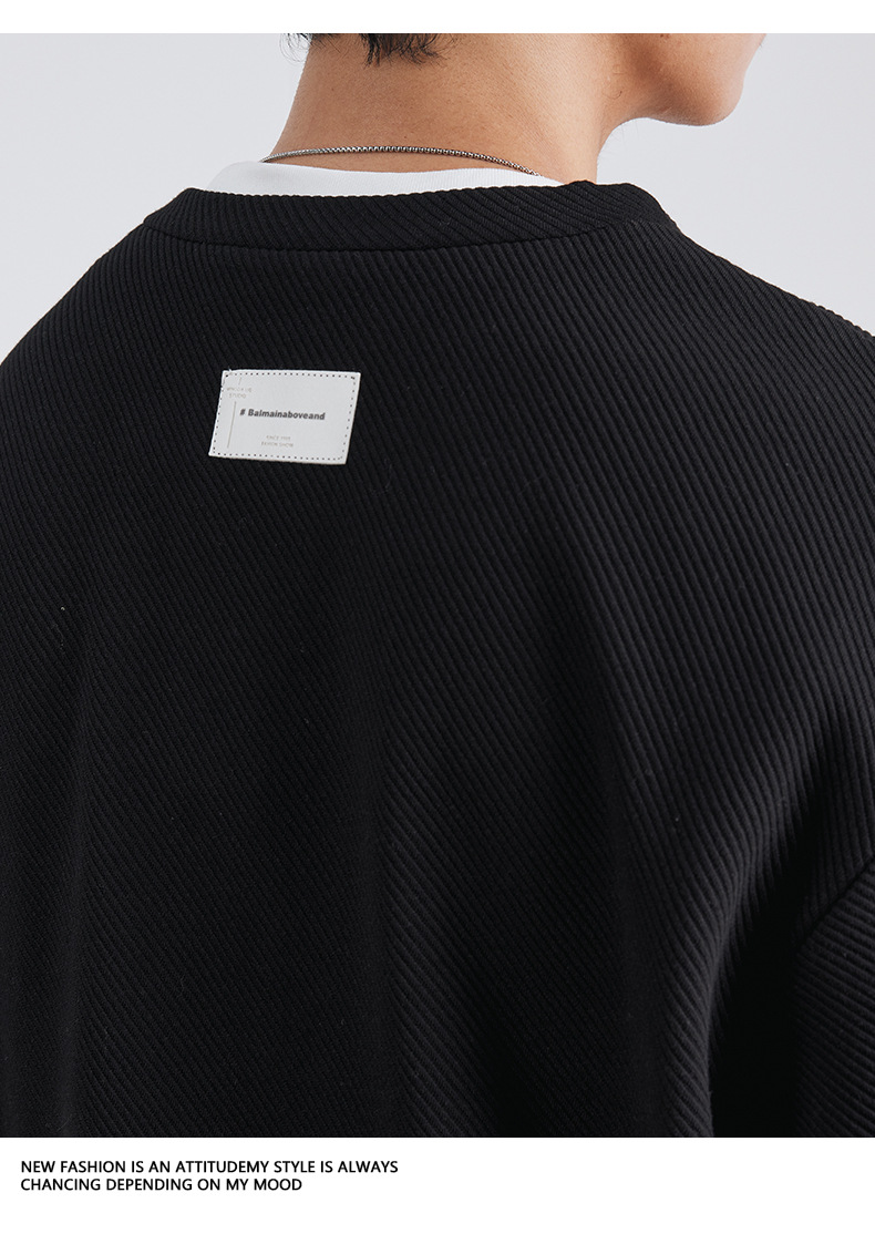 2025년 봄 남성용 헤비급 고급 질감 가짜 투피스 스웨트셔츠 루즈 트렌디 풀오버 캐주얼 가을 바닥 셔츠스토어 가기