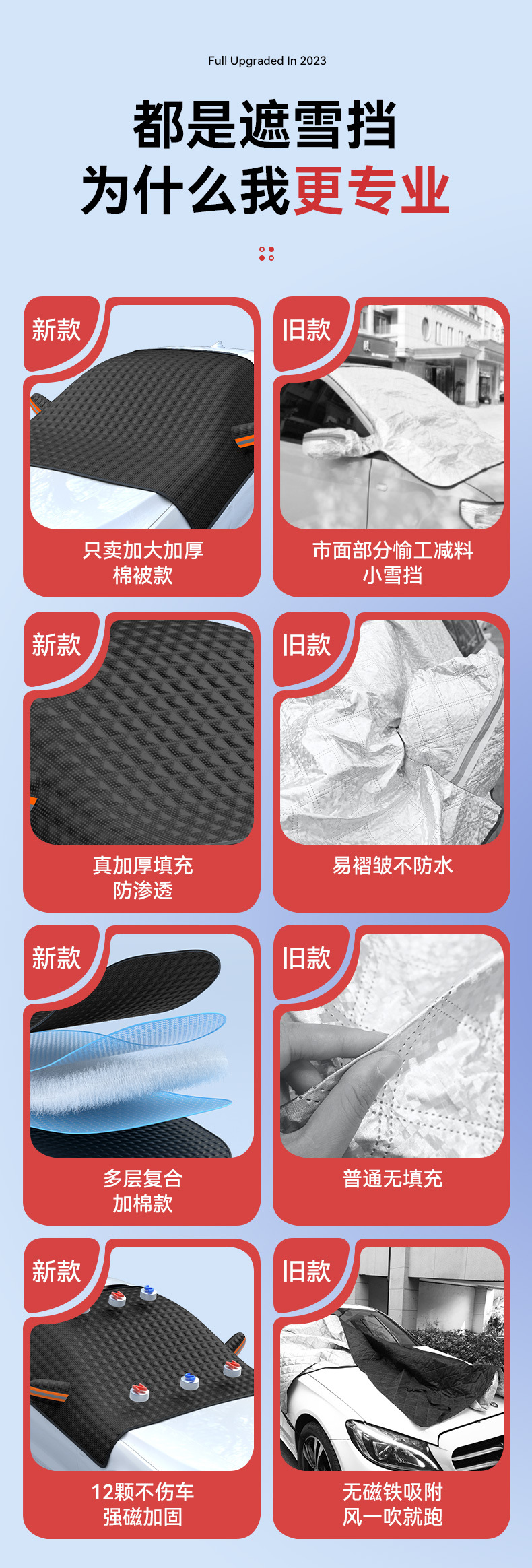 1、铝膜材质,不伤车漆,防晒、隔热、防雨雪、防风尘、防划痕、抗拉力强。