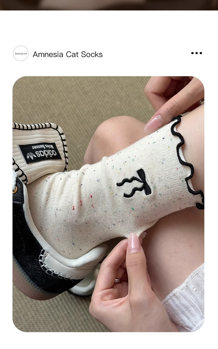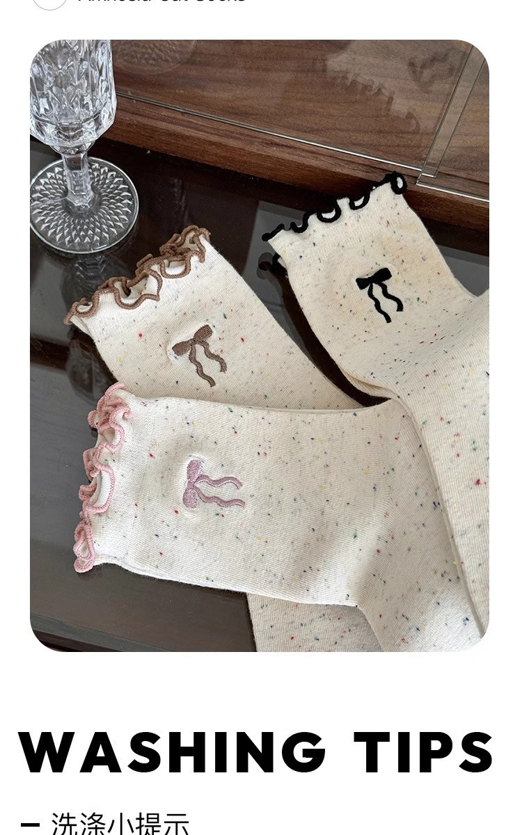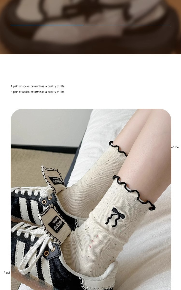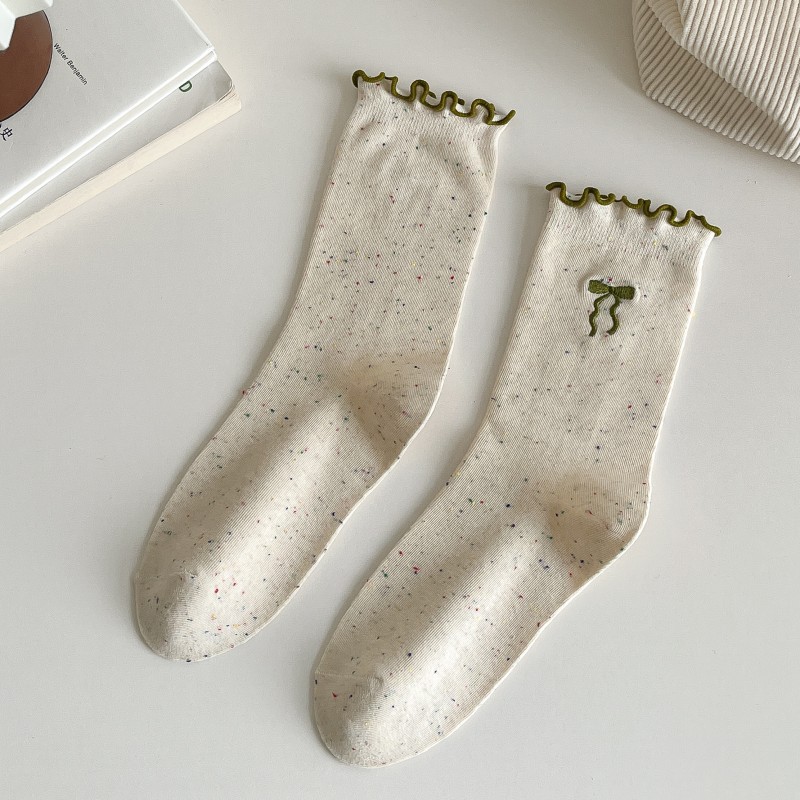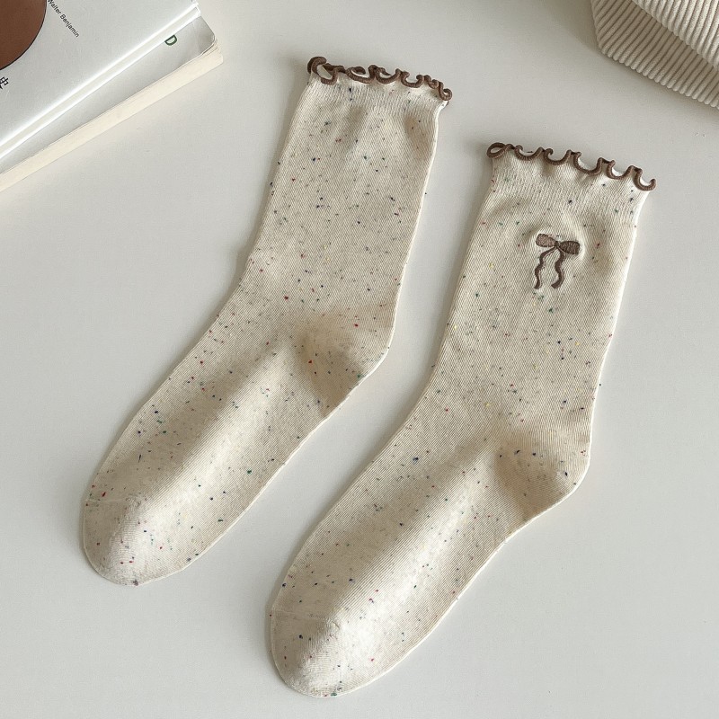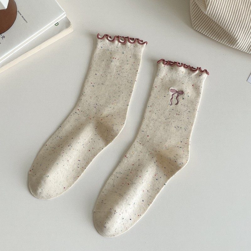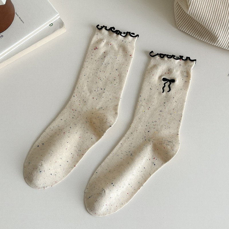 레이스 활 양말 여성의 가을 중추절 양말은 트렌디 한 일본식 칼리지 스타일 귀 가장자리 도트 원사 스택 양말스토어 가기
