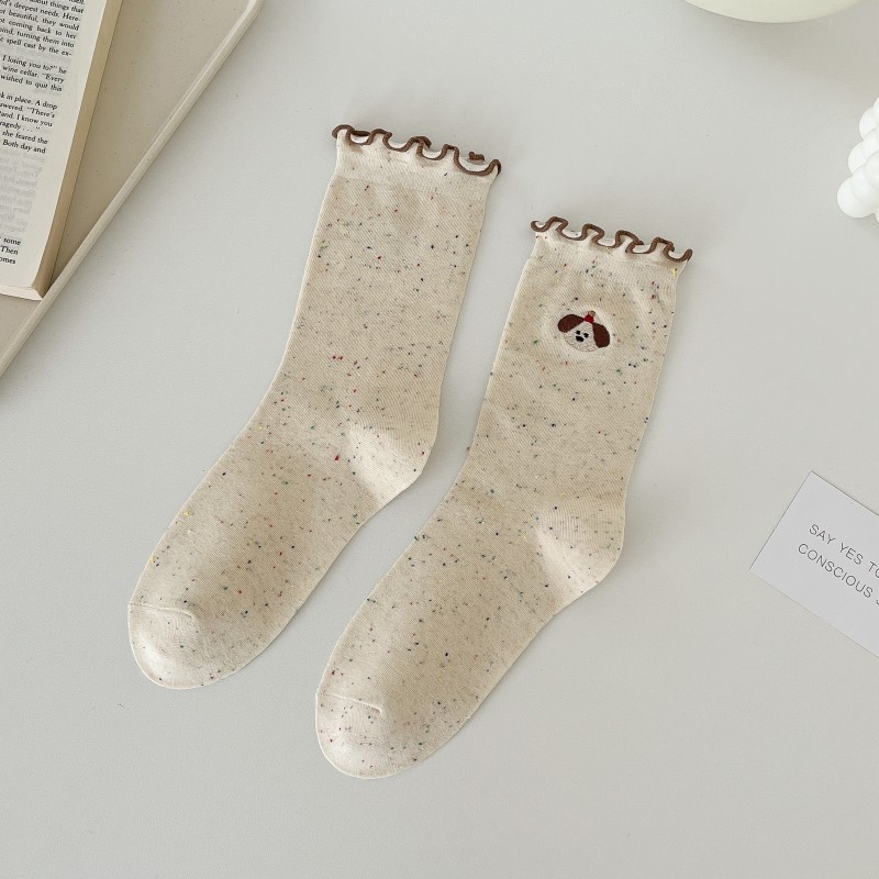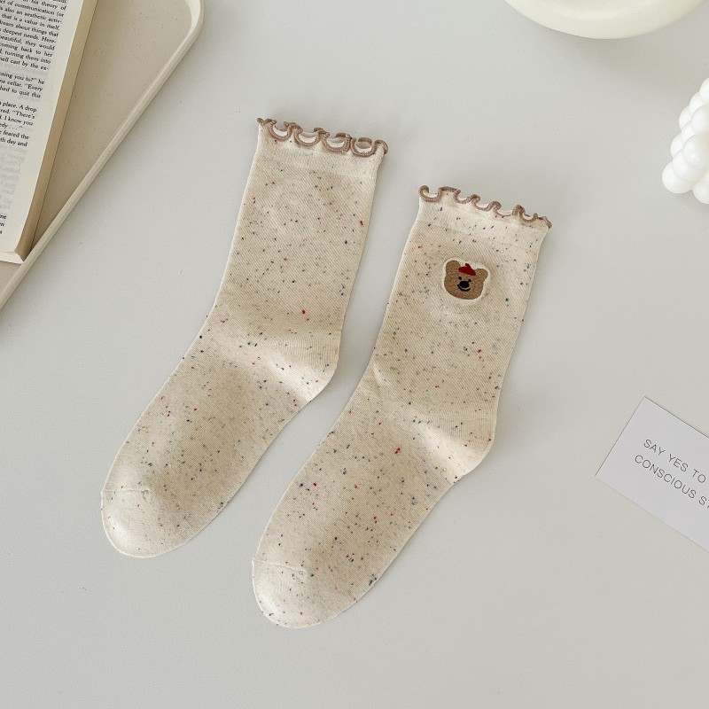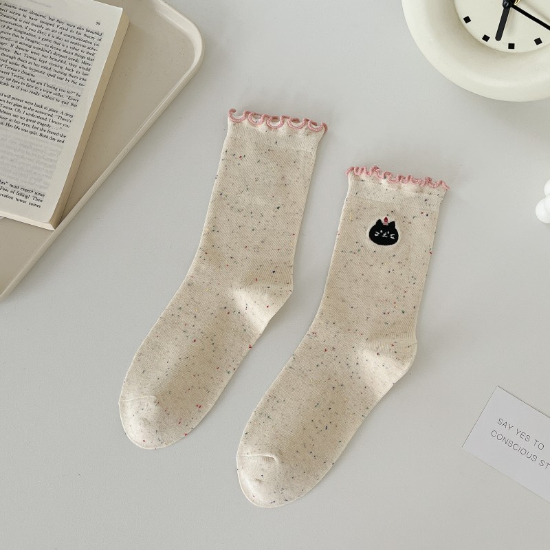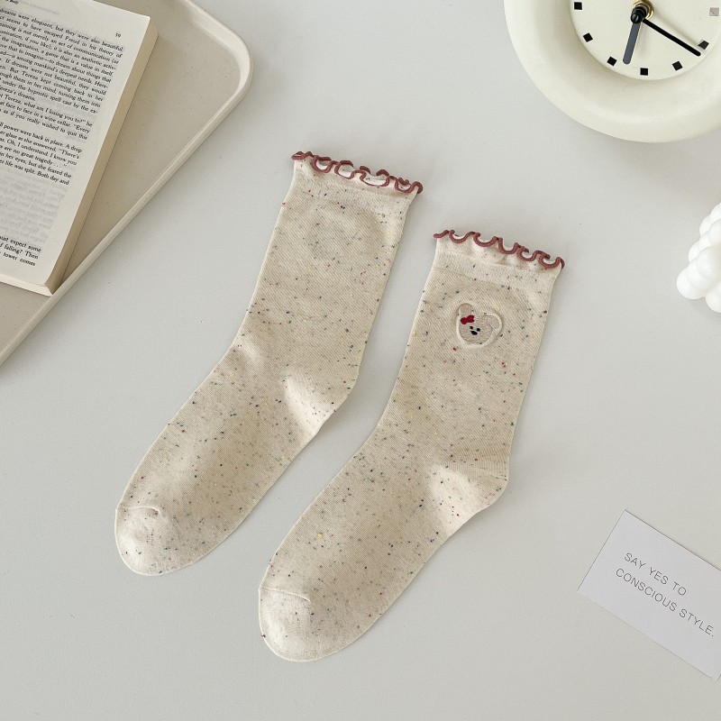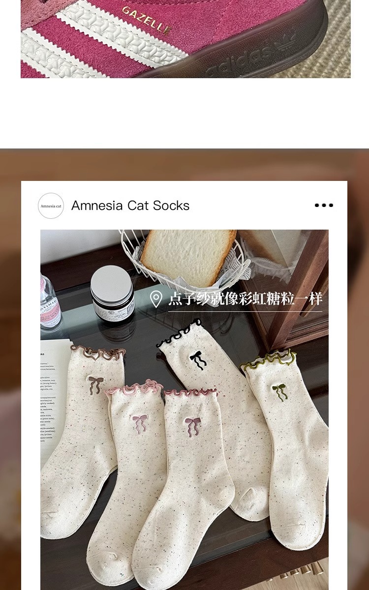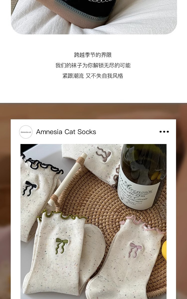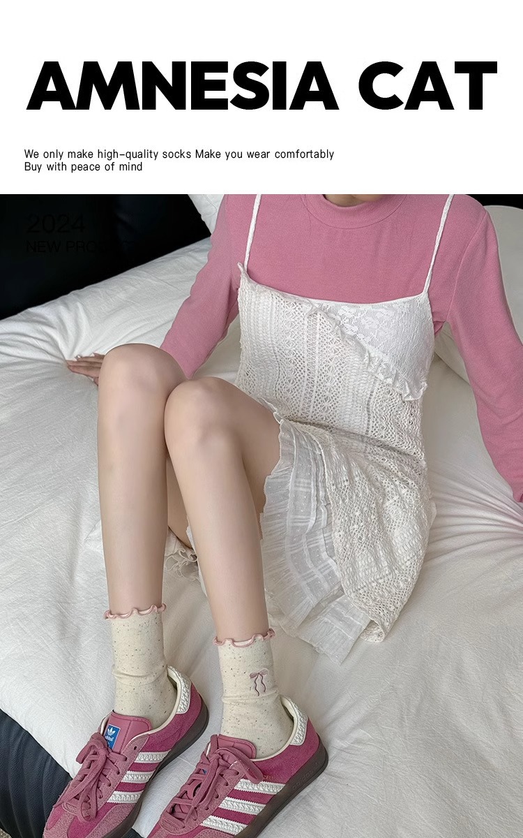 레이스 활 양말 여성의 가을 중추절 양말은 트렌디 한 일본식 칼리지 스타일 귀 가장자리 도트 원사 스택 양말스토어 가기