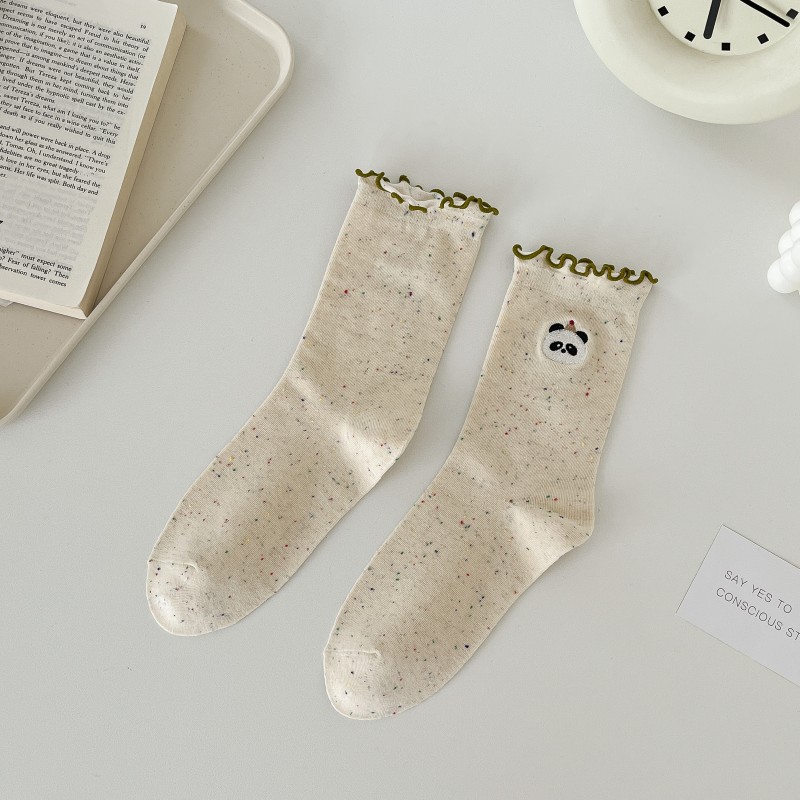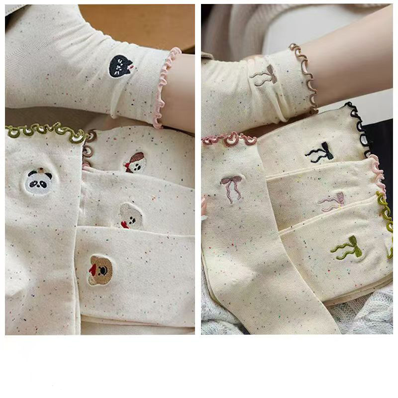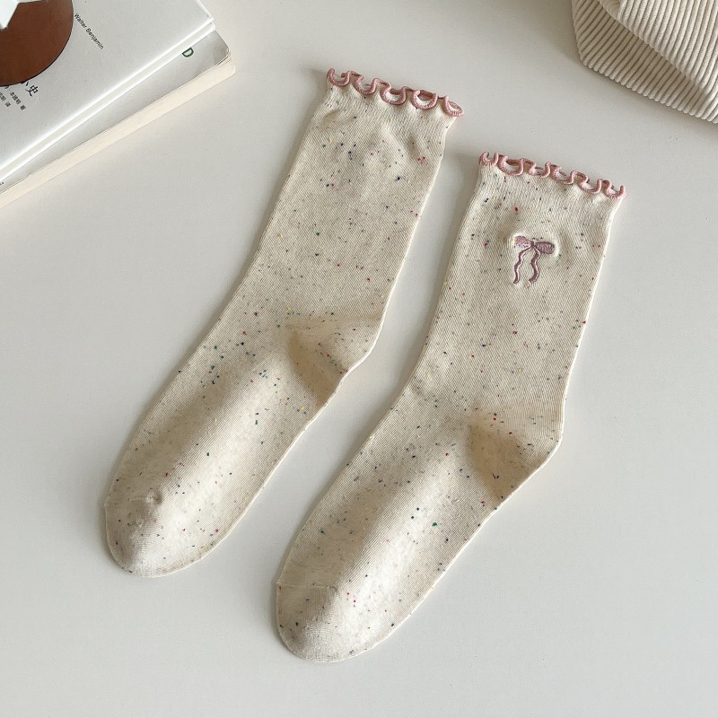 레이스 활 양말 여성의 가을 중추절 양말은 트렌디 한 일본식 칼리지 스타일 귀 가장자리 도트 원사 스택 양말