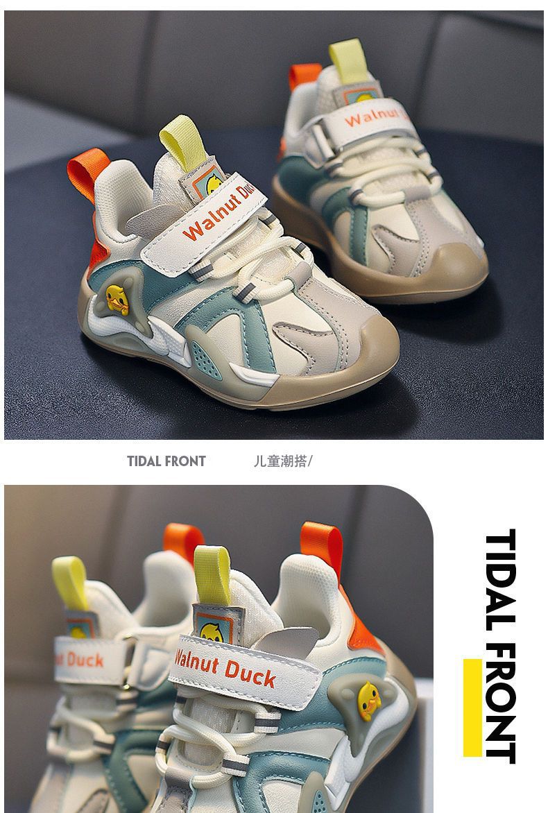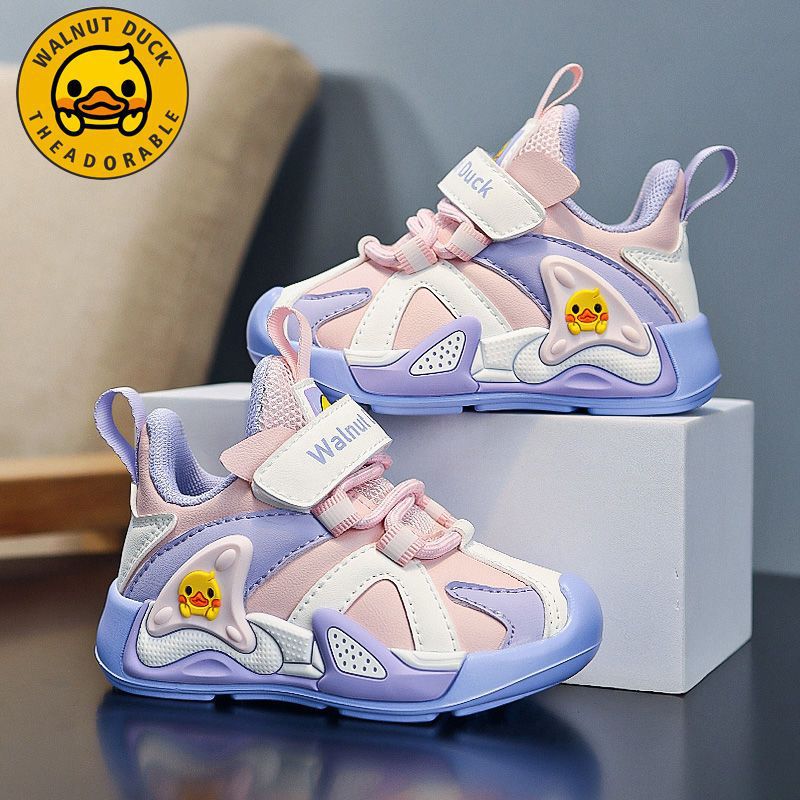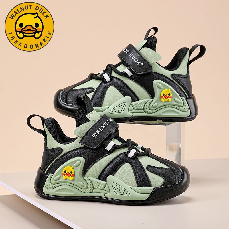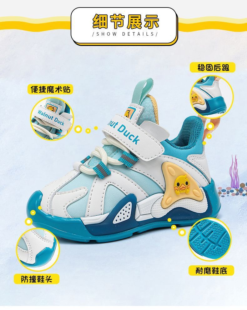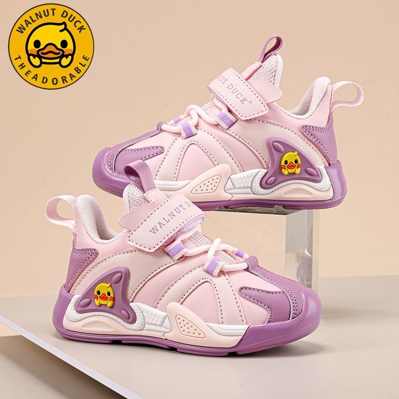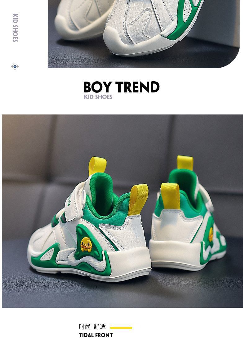 작은 노란색 오리 소녀 운동화 2024 봄과 가을 새로운 가죽 방수 공주 캐주얼 내마모성 미끄럼 방지 아동용 신발