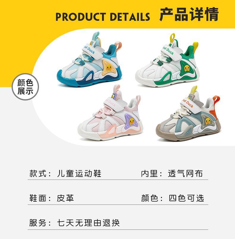 작은 노란색 오리 소녀 운동화 2024 봄과 가을 새로운 가죽 방수 공주 캐주얼 내마모성 미끄럼 방지 아동용 신발스토어 가기