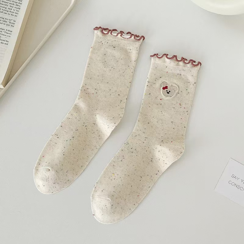 나무 귀 양말 여성의 봄과 가을 양말은 레이스 활을 간단한 다재다능한 학생 더미 양말에 굴렀습니다.스토어 가기