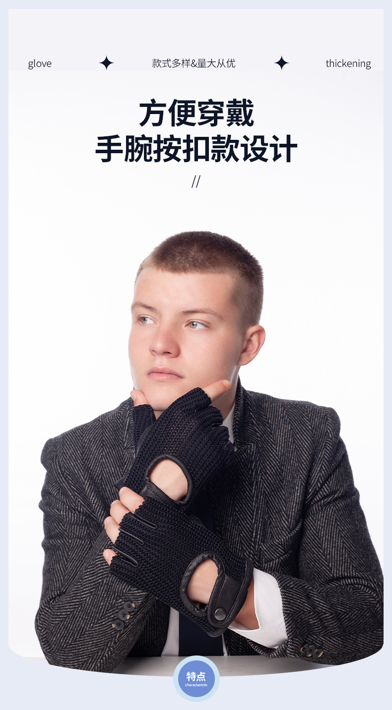 새로운 스타일 승마 가죽 반 손가락 장갑 겨울 야외 남성 오토바이 승마 장갑 반 손가락 전시 가죽 장갑스토어 가기