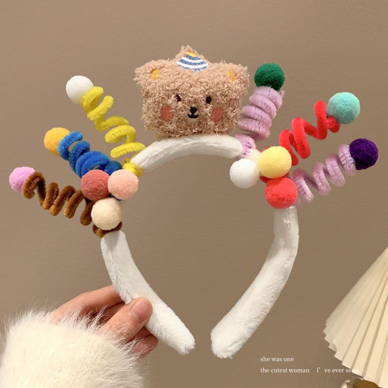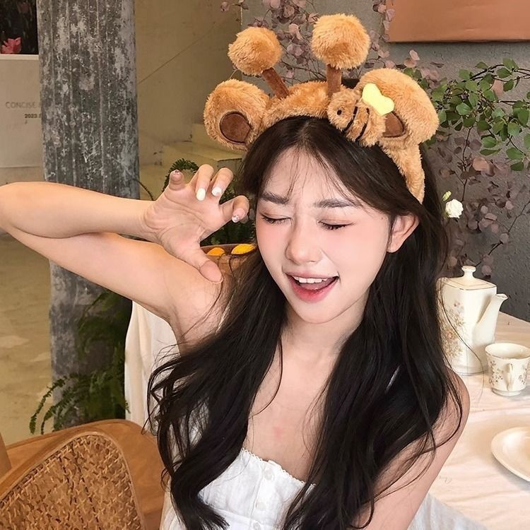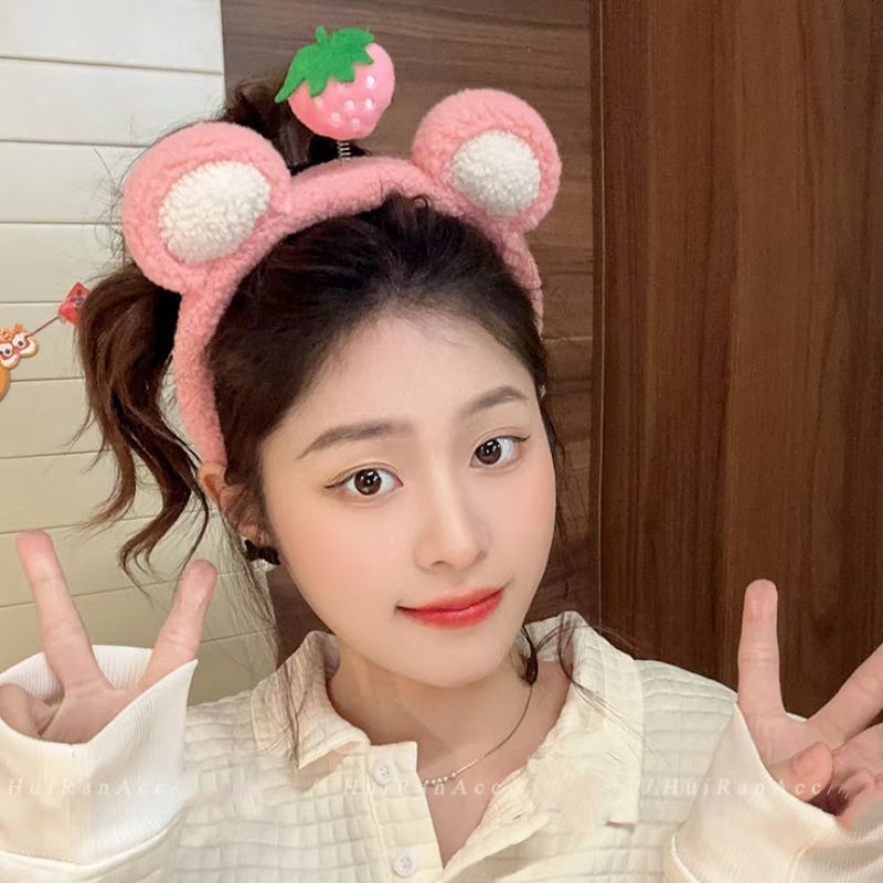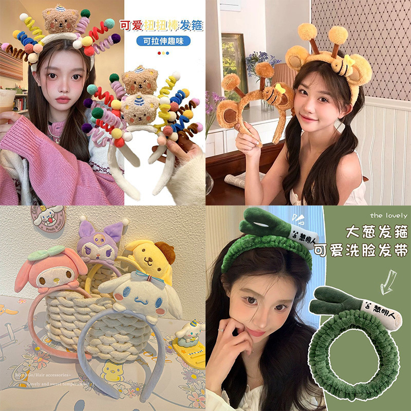 2025 새로운 가을과 겨울 귀여운 헤어 후프 학생 기숙사 워시 얼굴 메이크업 헤어 압력 미끄럼 방지 만화 헤어 후프 헤어 액세서리