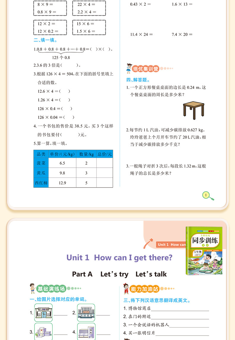 우수한 동기 교육 초등 학교 1-6 학년 1 권 언어, 수학 및 영어 전체 교육 자료 동기 연습 PEP 6스토어 가기