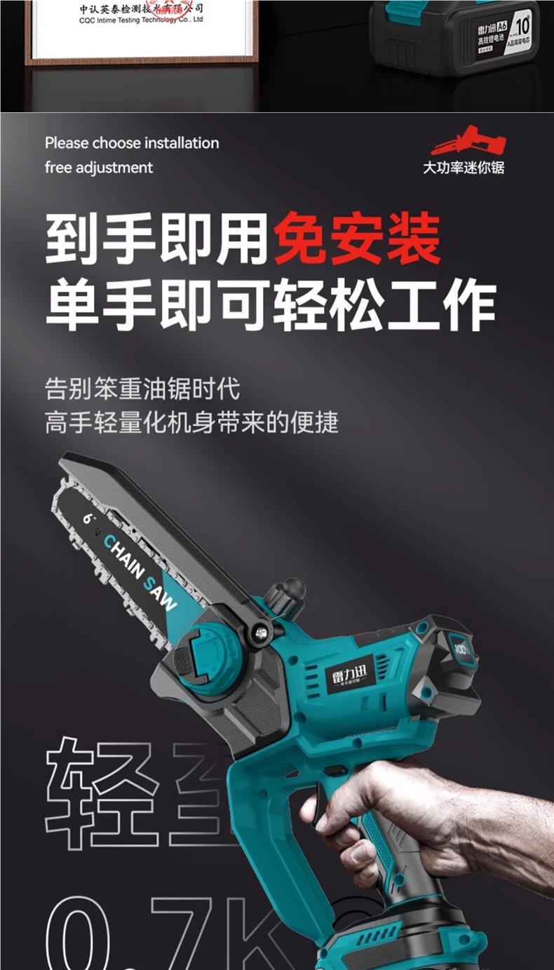 전기 톱 가구 작은 휴대용 나무 재충전 용 리튬 전기는 장작 야외 목재 절단 아티팩트에 따라 단일 팔찌를 보았다