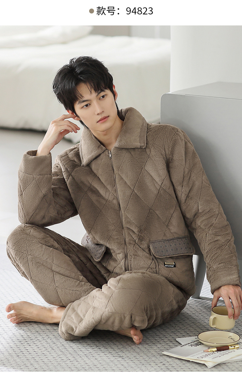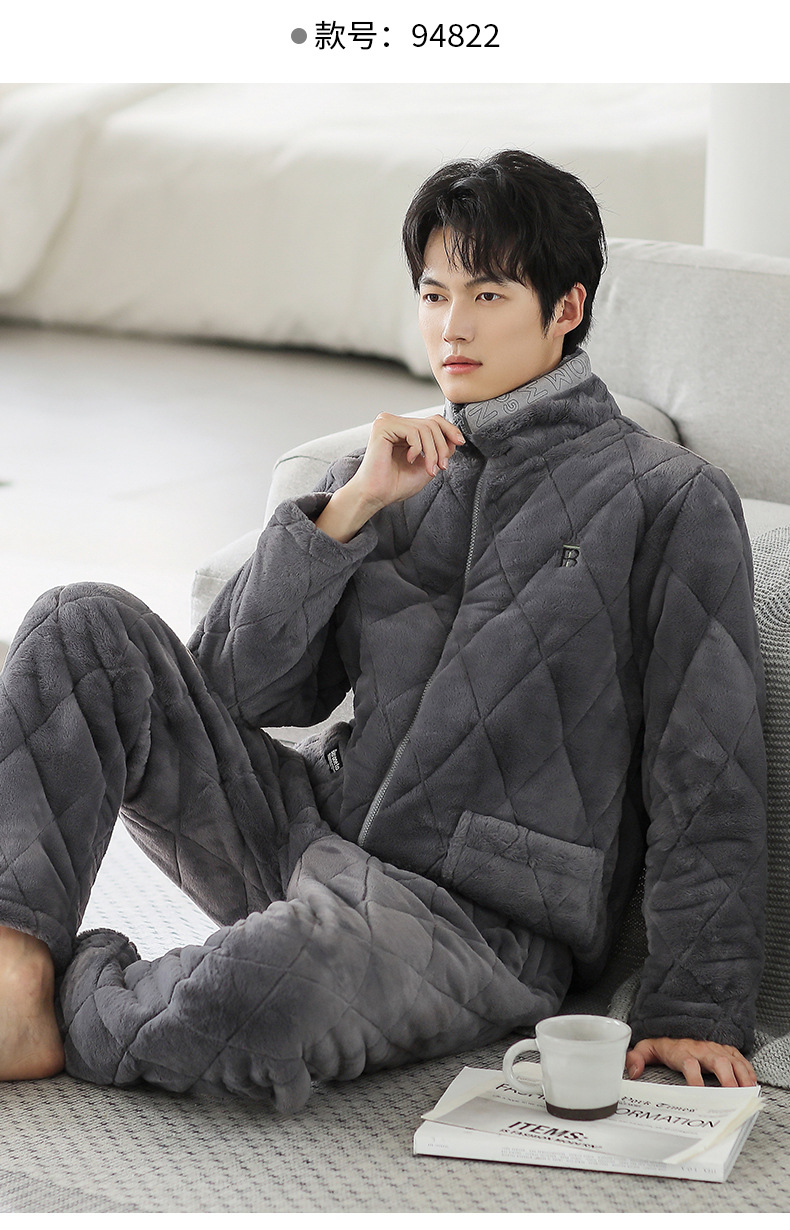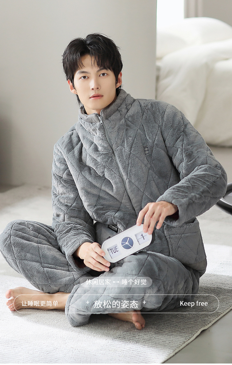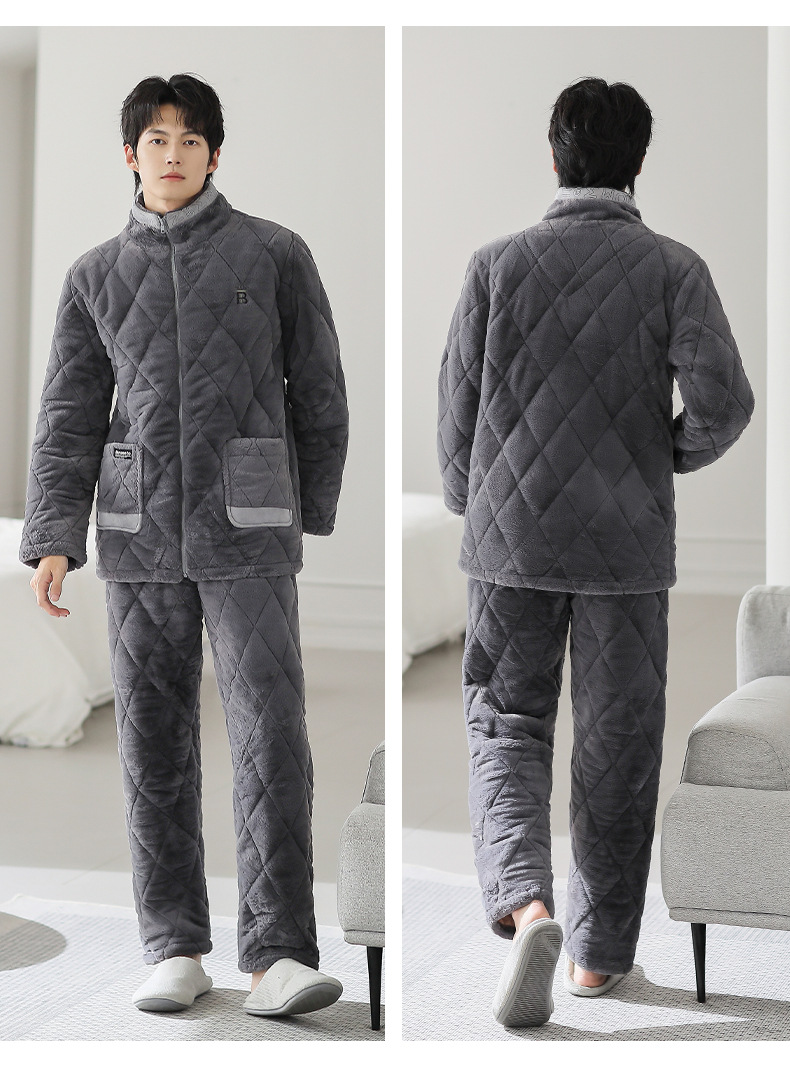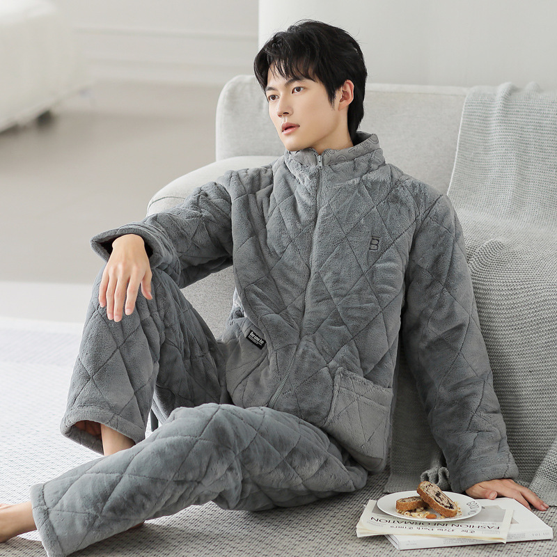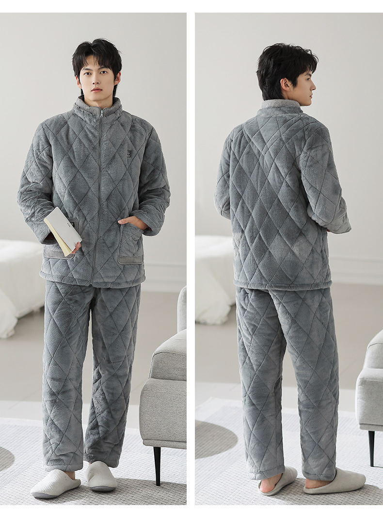 3 층 퀼트 남성 파자마 겨울 두꺼운 카디건 하이 레벨 지퍼 수직 칼라 캐주얼 따뜻한 아빠 홈 옷