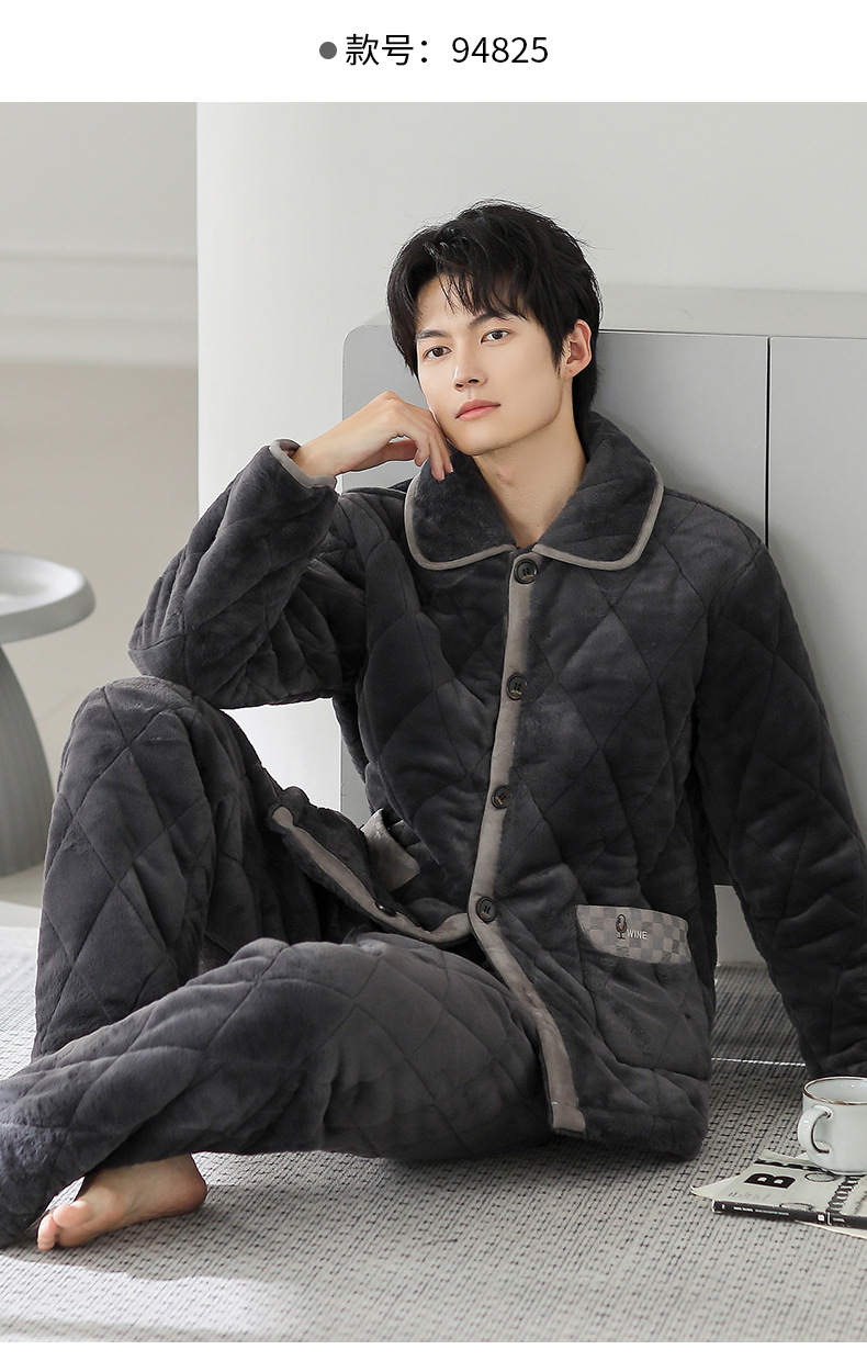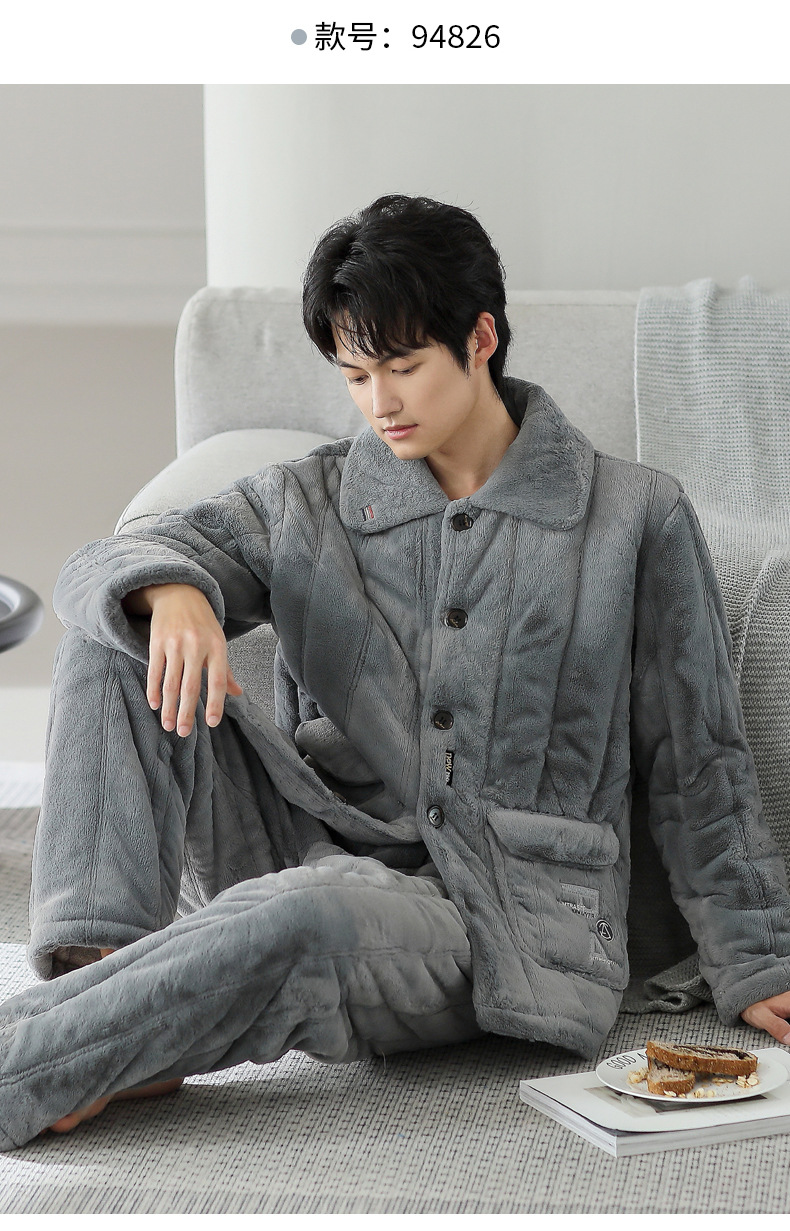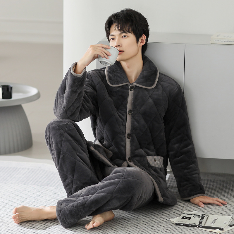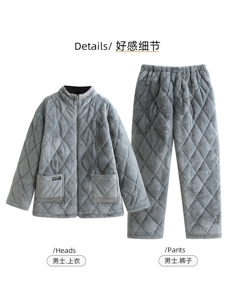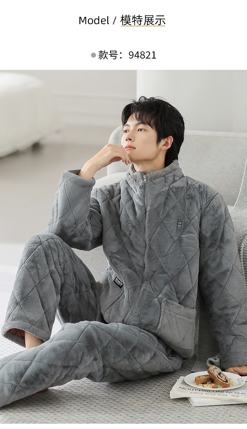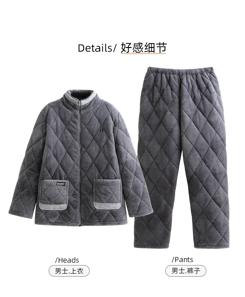 3 층 퀼트 남성 파자마 겨울 두꺼운 카디건 하이 레벨 지퍼 수직 칼라 캐주얼 따뜻한 아빠 홈 옷