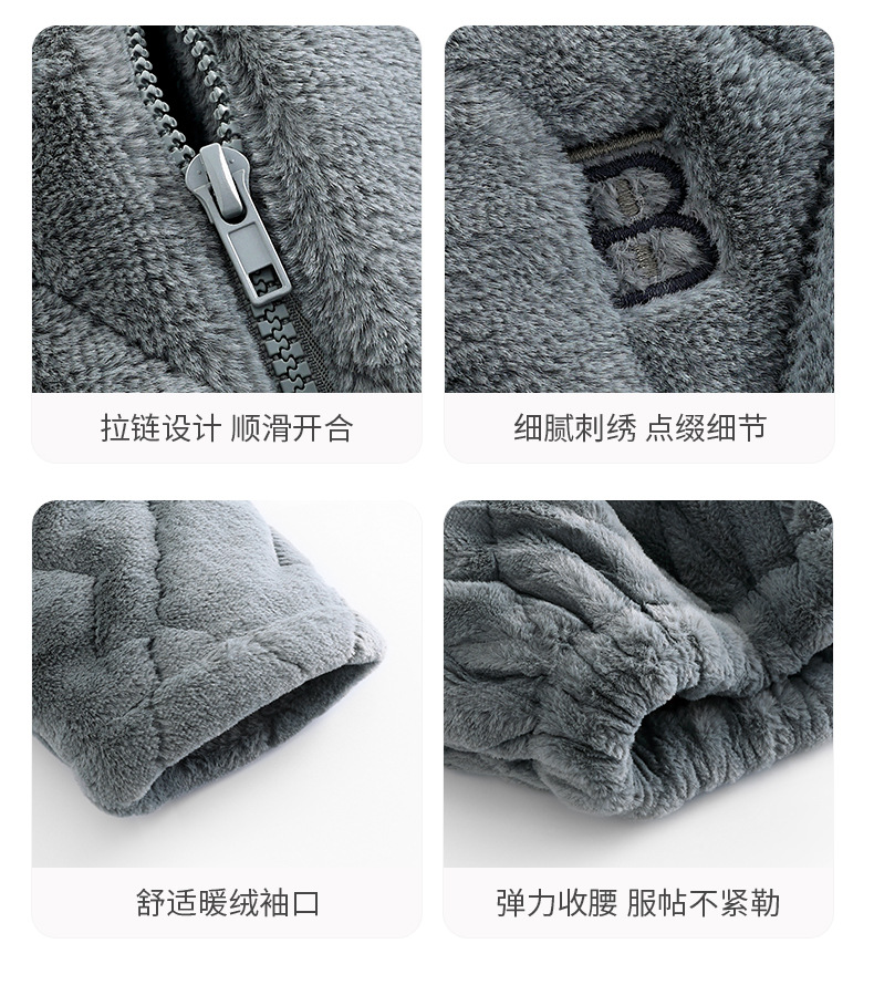 3 층 퀼트 남성 파자마 겨울 두꺼운 카디건 하이 레벨 지퍼 수직 칼라 캐주얼 따뜻한 아빠 홈 옷스토어 가기