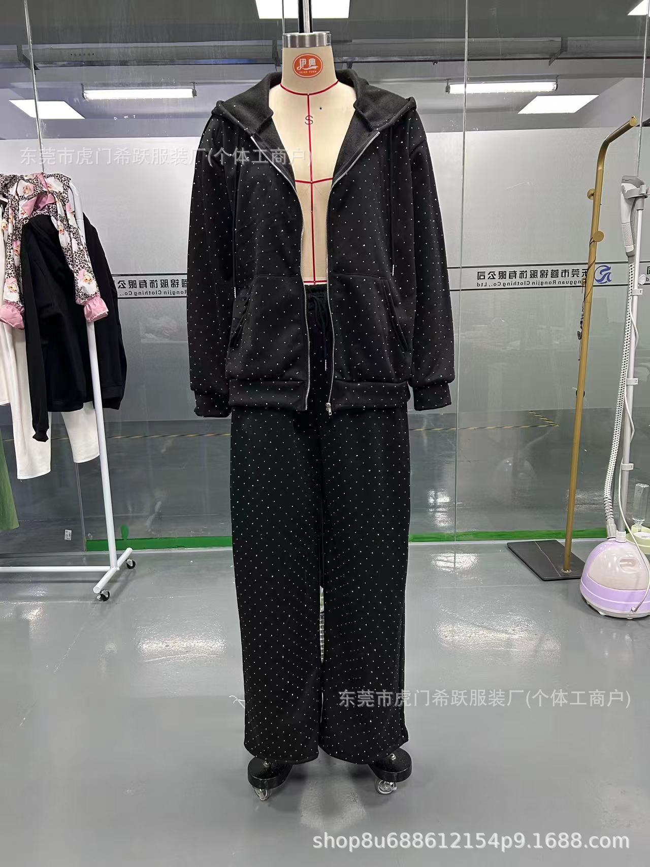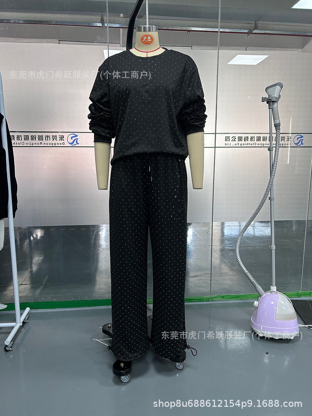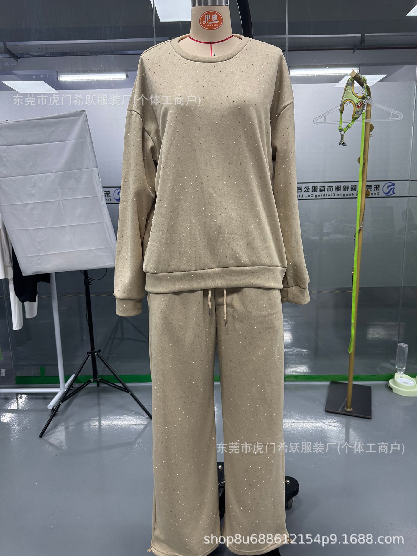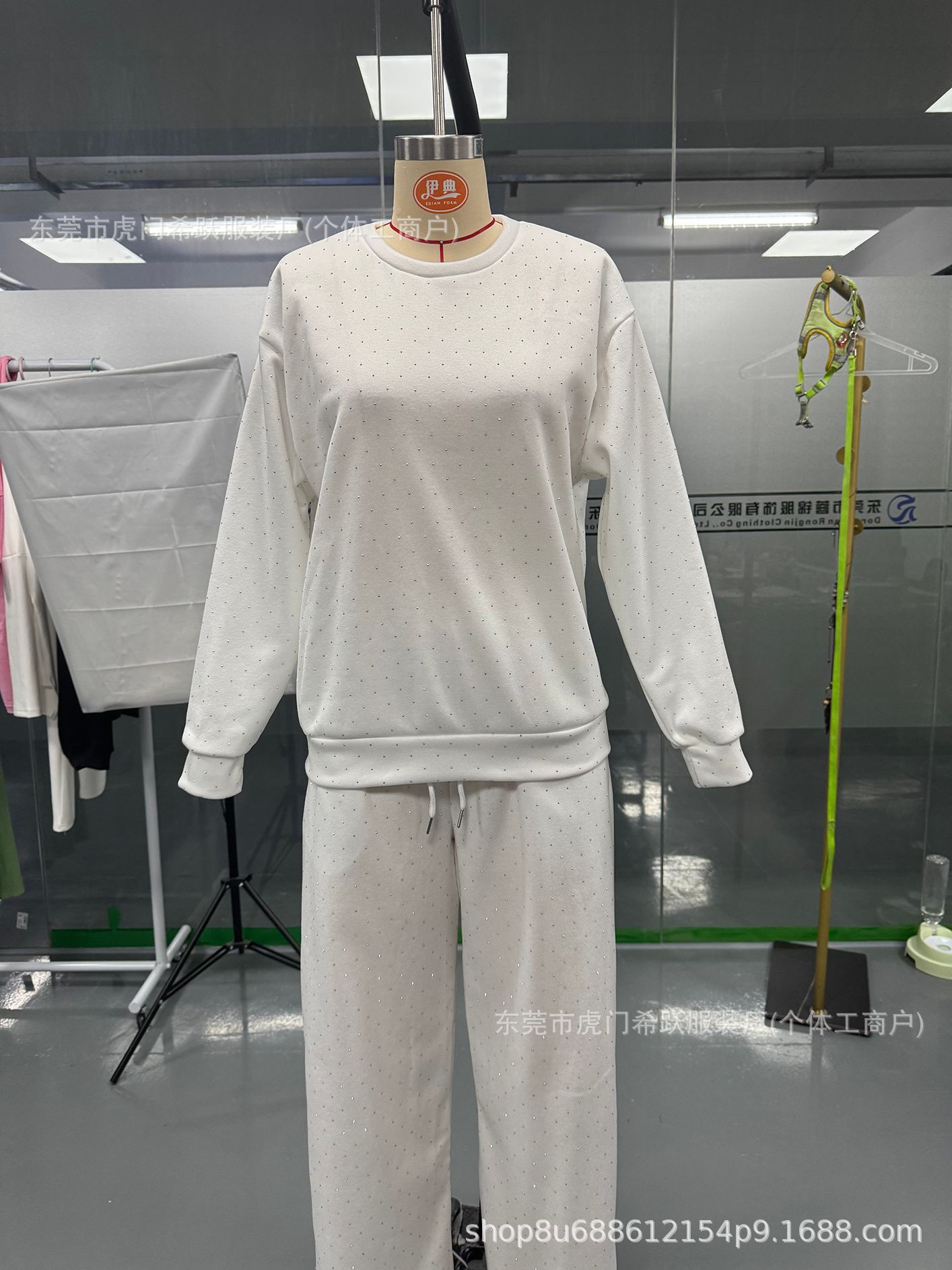 2024 유럽과 미국의 국경 간 가을 및 겨울 폭발 여성 캐주얼 라운드 넥 긴 소매 전신 핫 드릴링 로프 발가락 투피스 세트스토어 가기