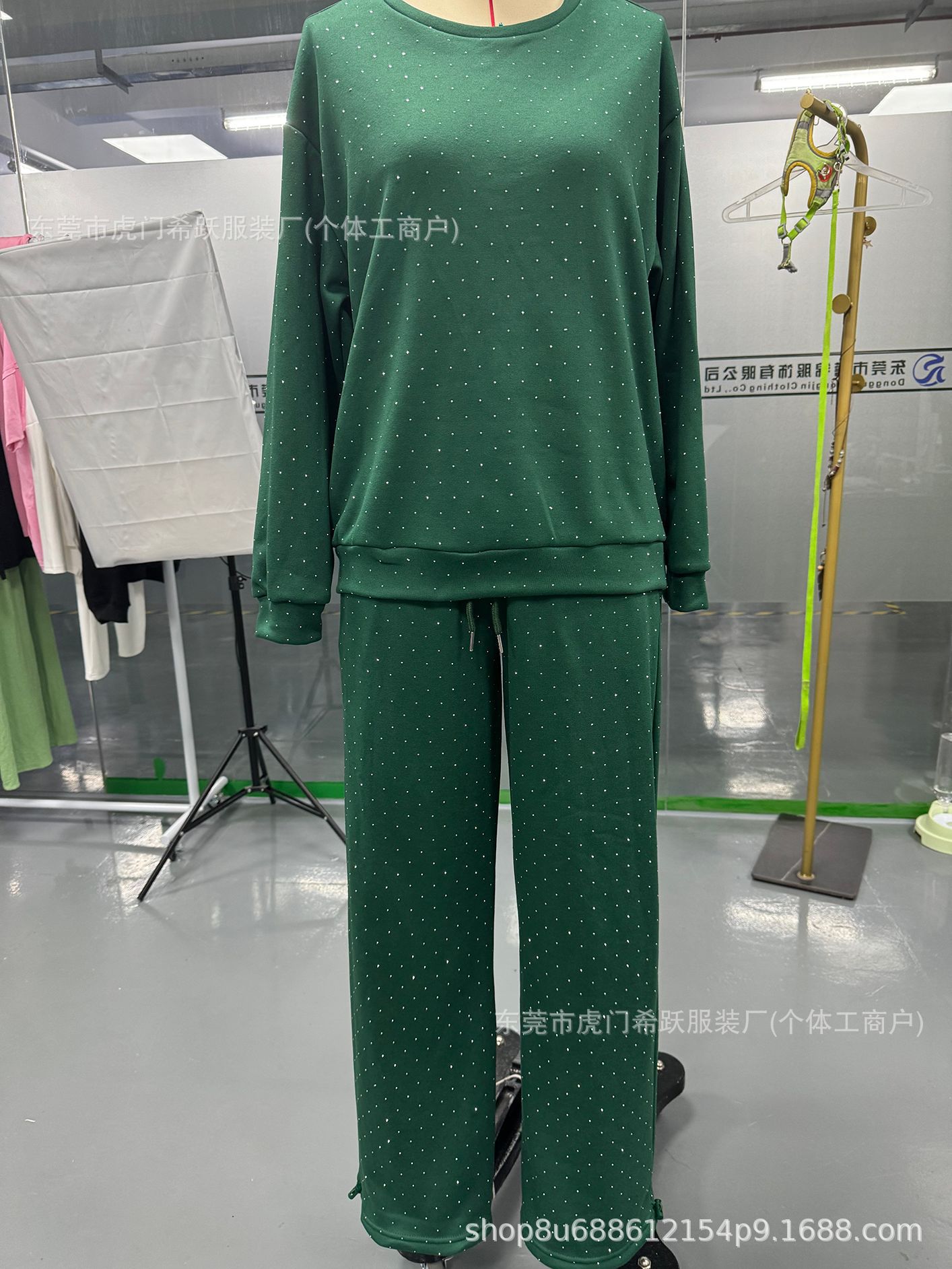2024 유럽과 미국의 국경 간 가을 및 겨울 폭발 여성 캐주얼 라운드 넥 긴 소매 전신 핫 드릴링 로프 발가락 투피스 세트
