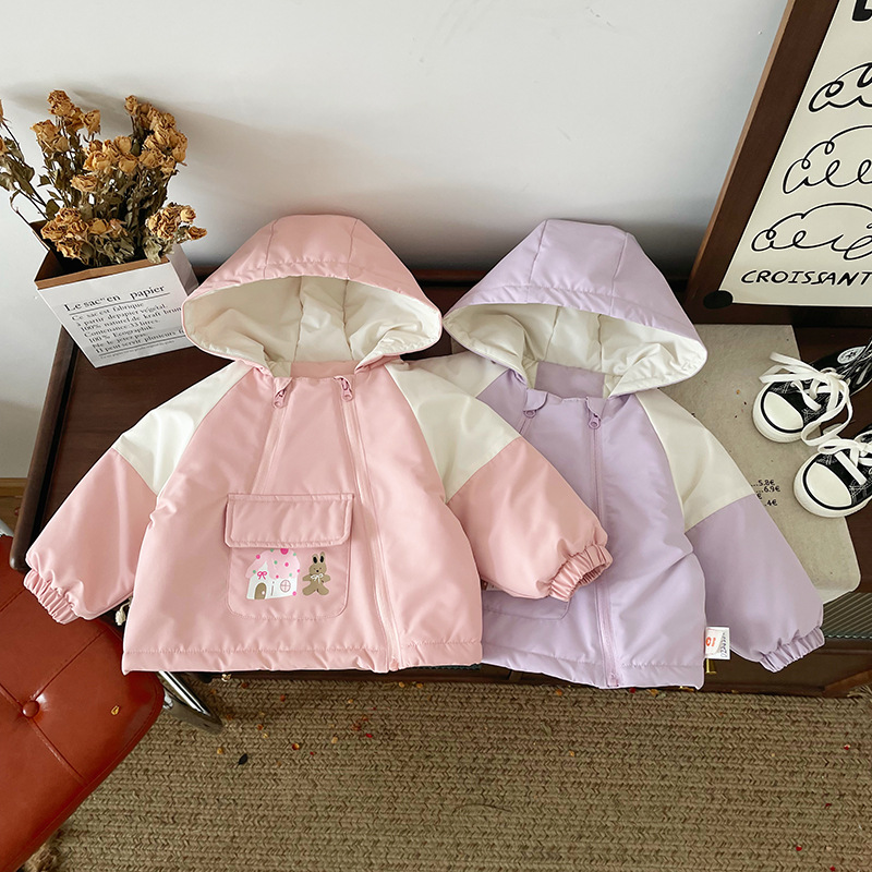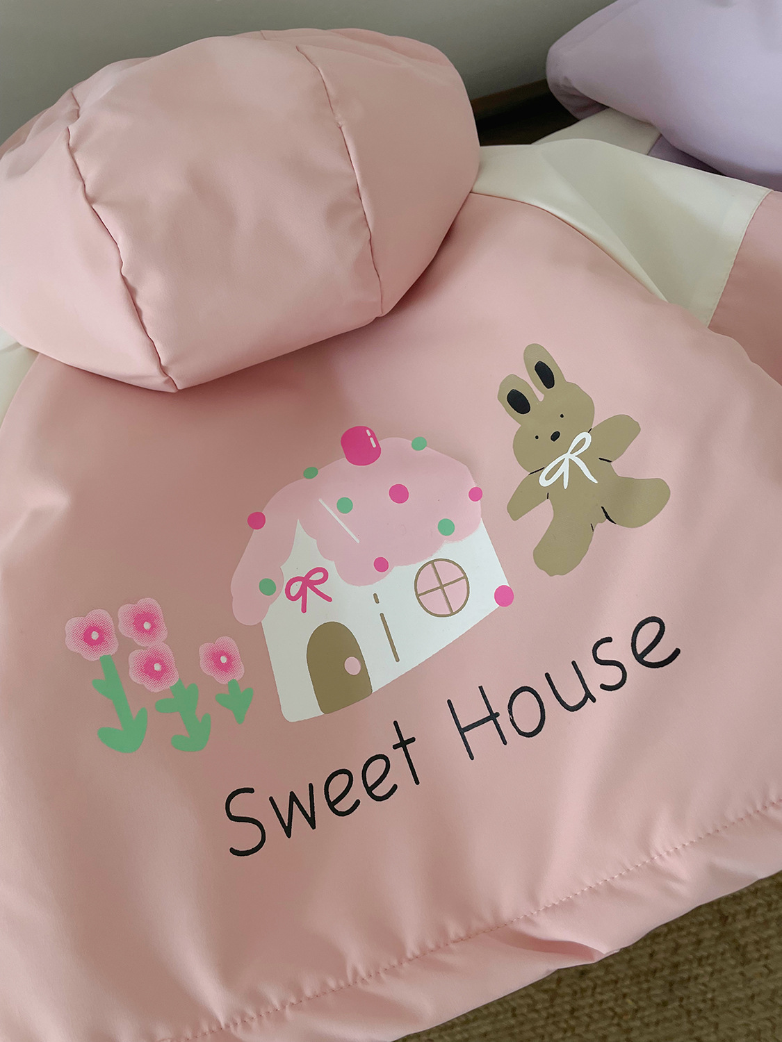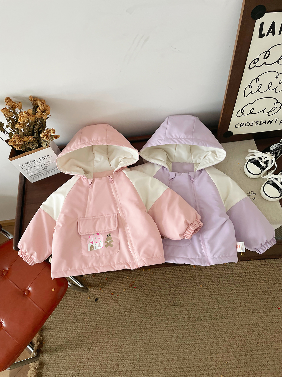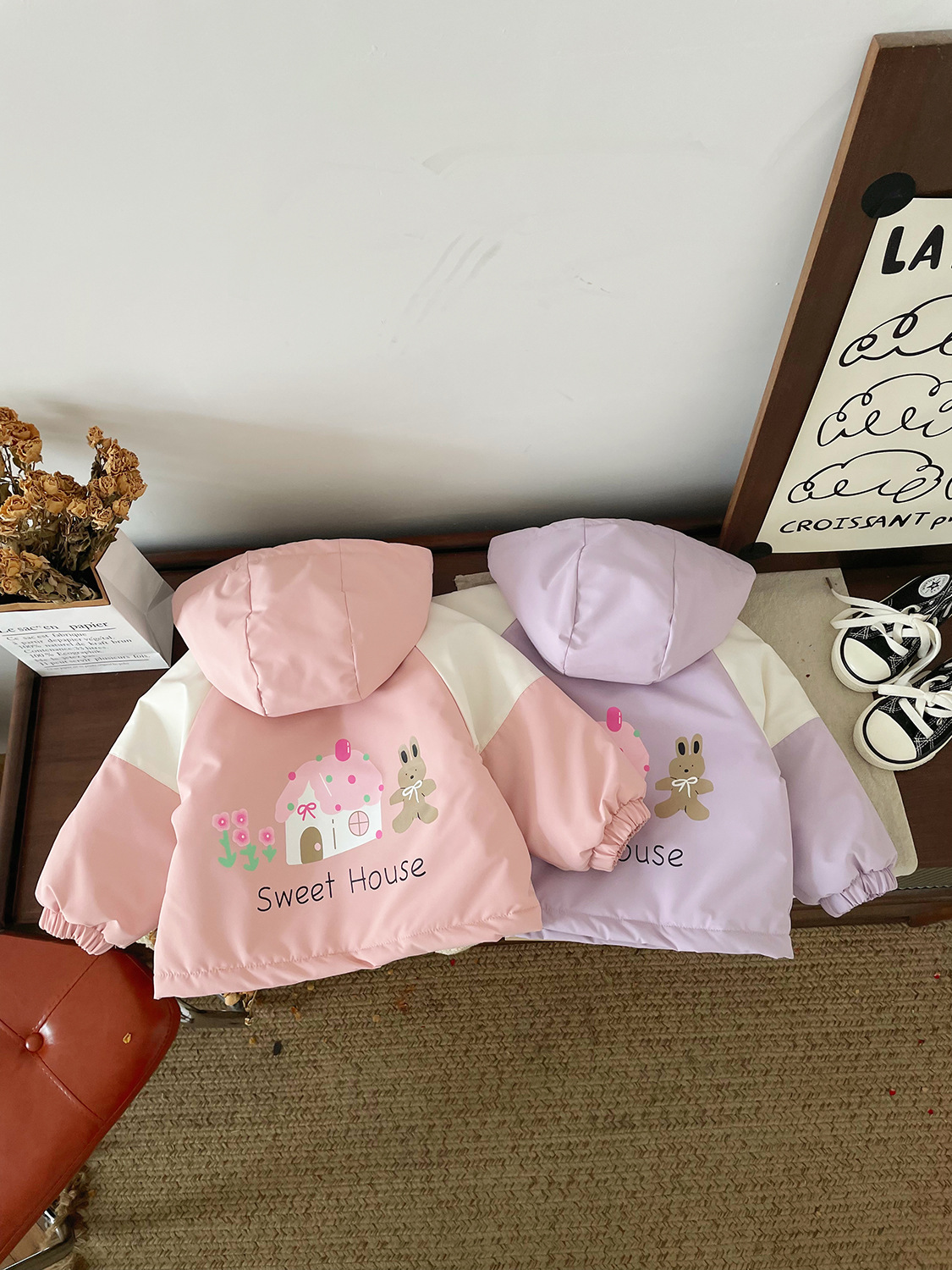 2024 가을과 겨울 새로운 어린이 폭행 옷 소녀 캡 클립 코튼 코트 만화 어린이 서양식 외출 면봉 재킷
