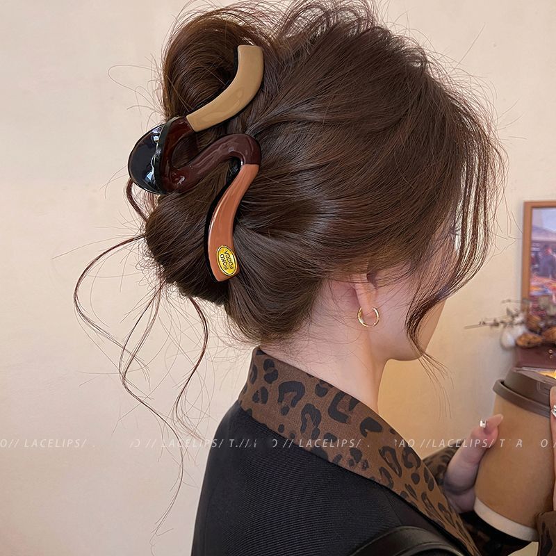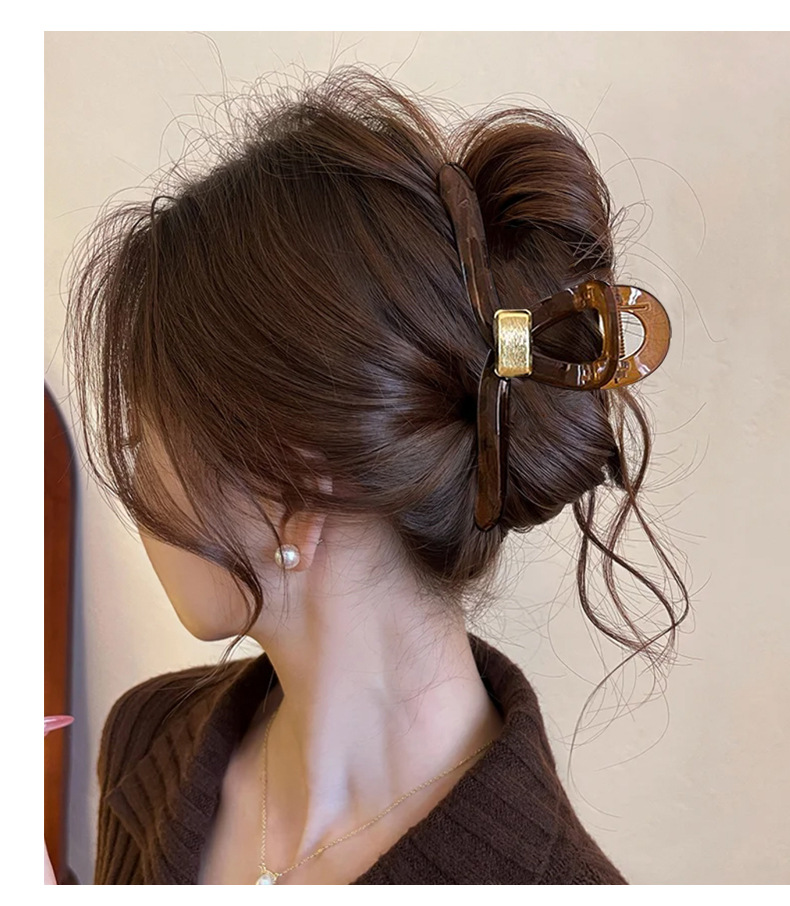다크 브라운 대형 그랩 클립 여성용 하이 엔드 머리 상어 클립 헤어 볼륨 멀티 헤어핀 우아한 헤어핀 헤드웨어