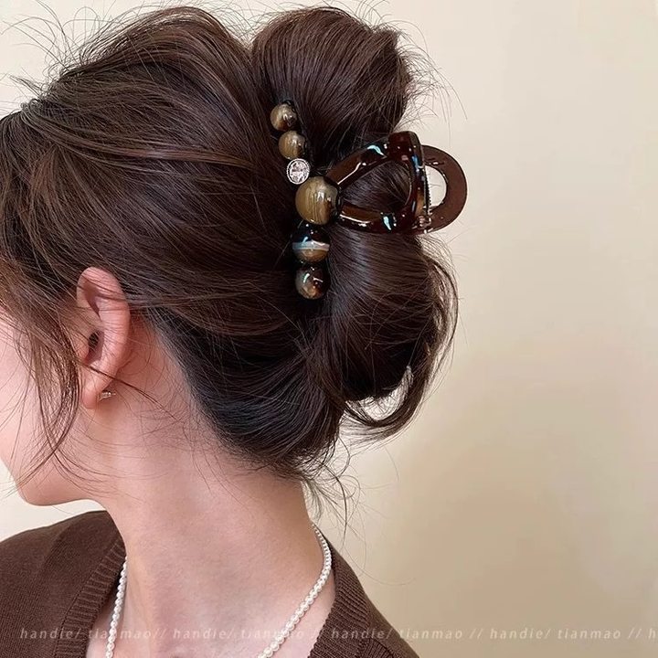 다크 브라운 대형 그랩 클립 여성용 하이 엔드 머리 상어 클립 헤어 볼륨 멀티 헤어핀 우아한 헤어핀 헤드웨어스토어 가기